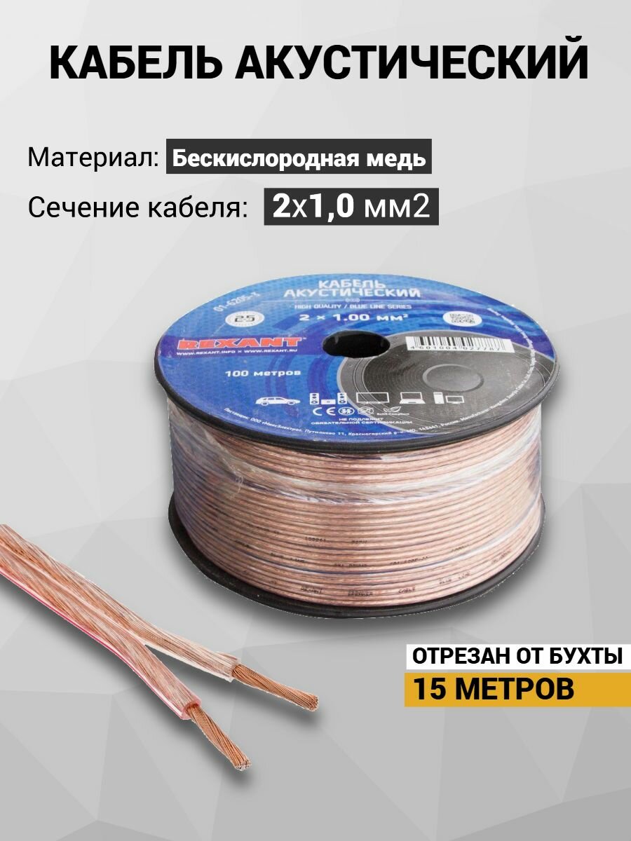 10 цен на Провода акустические 2х1,0 (15м) кабель для динамиков медь 99,99%