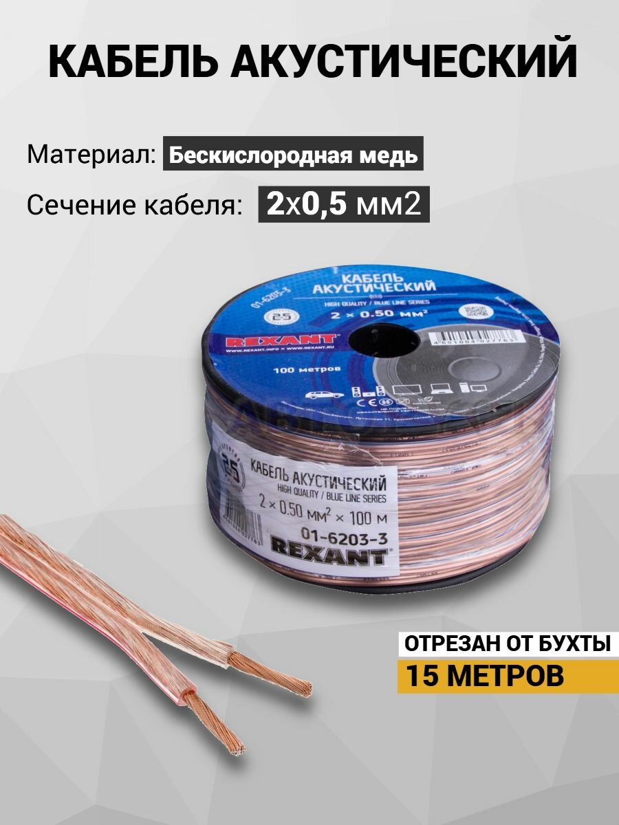Провода акустические 2х0,5 кабели для динамиков МЕДЬ 99,99% 15м информация: