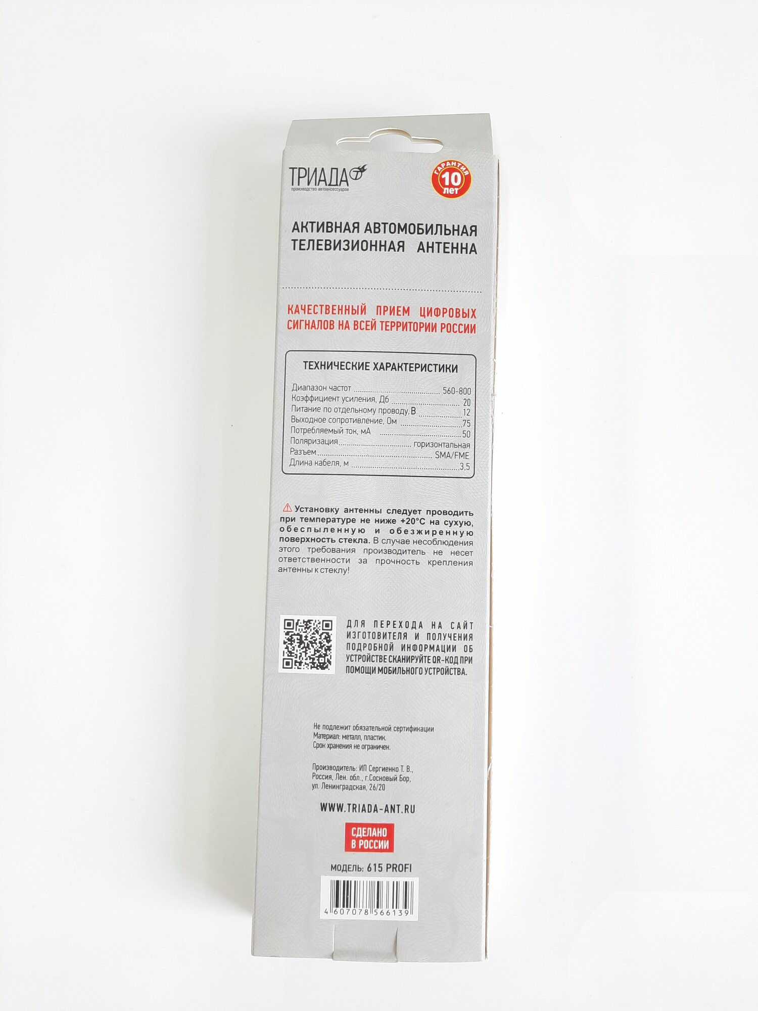 Антенна автомобильная внутрисалонная для ТВ Триада-615 информация: