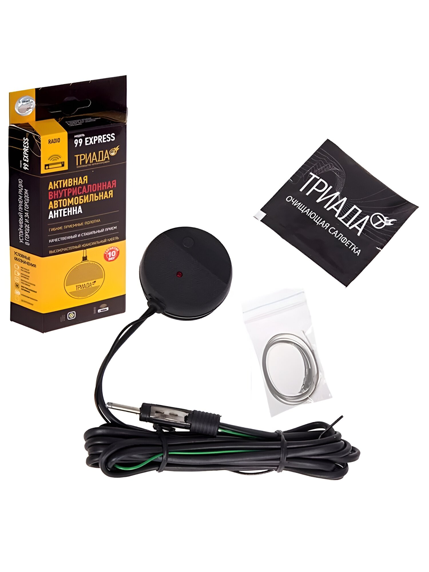 | Комплектация | Антенна автомобильная активная Триада-99 Express для дальнего приема УКВ;FM;AM,инструкция, упаковка. |