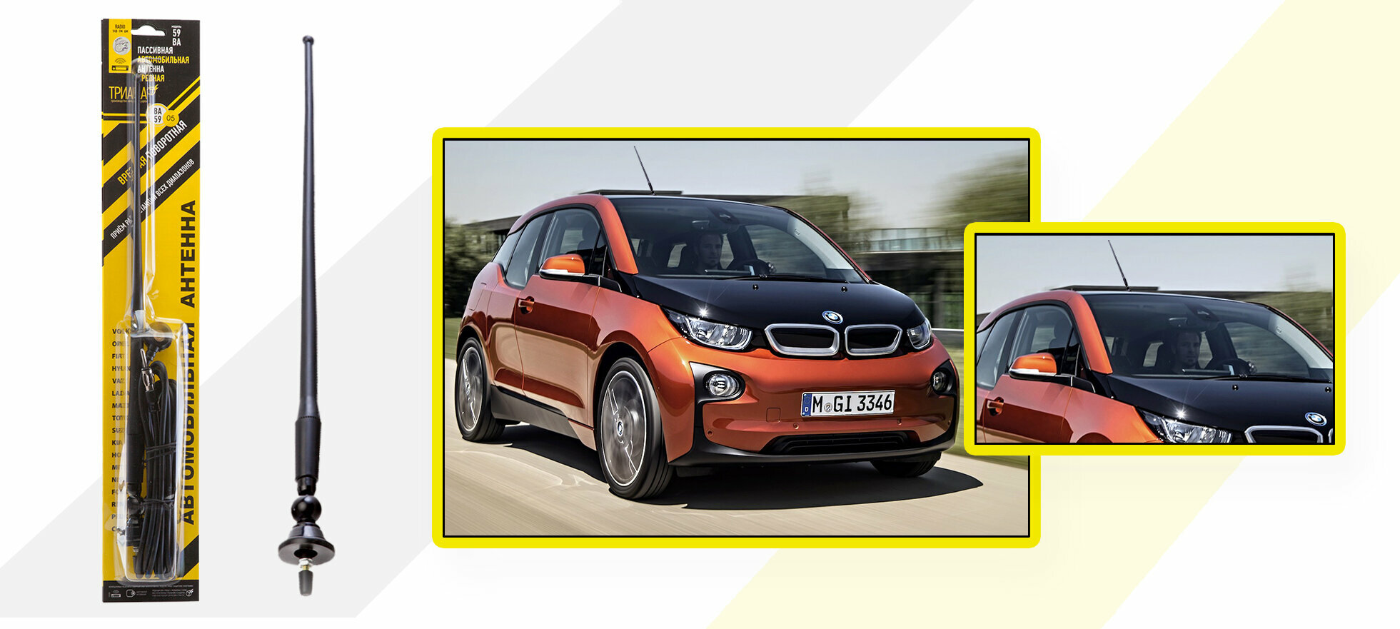 Активная автомобильная радиоантенна "Триада 002 Mini" всеволновая с регулировкой усиления