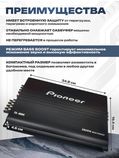 Автомобильный усилитель звука 3800W/ Усилитель в машину 4 канальный. информация: