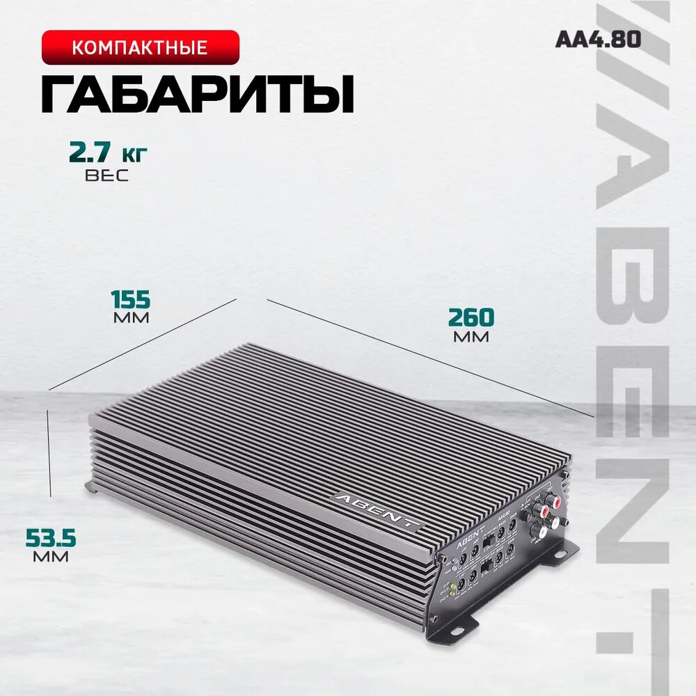Усилитель автомобильный ABENT AA4.80, 4х канальный, Class A/B, 85Вт, 2Ом информация: