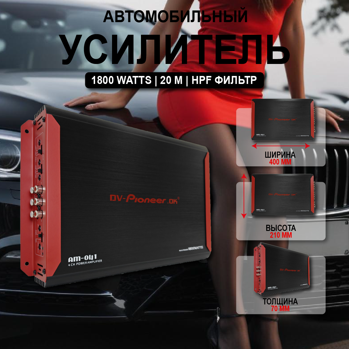 Усилитель звука автомобильный 4 канальный для сабвуфера для колонок GMA 041 информация: