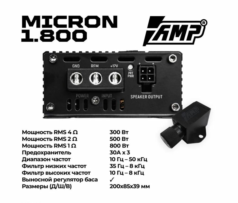 Усилитель автомобильный AMP Micron, для всех моделей, 1 канал, 800Вт информация: