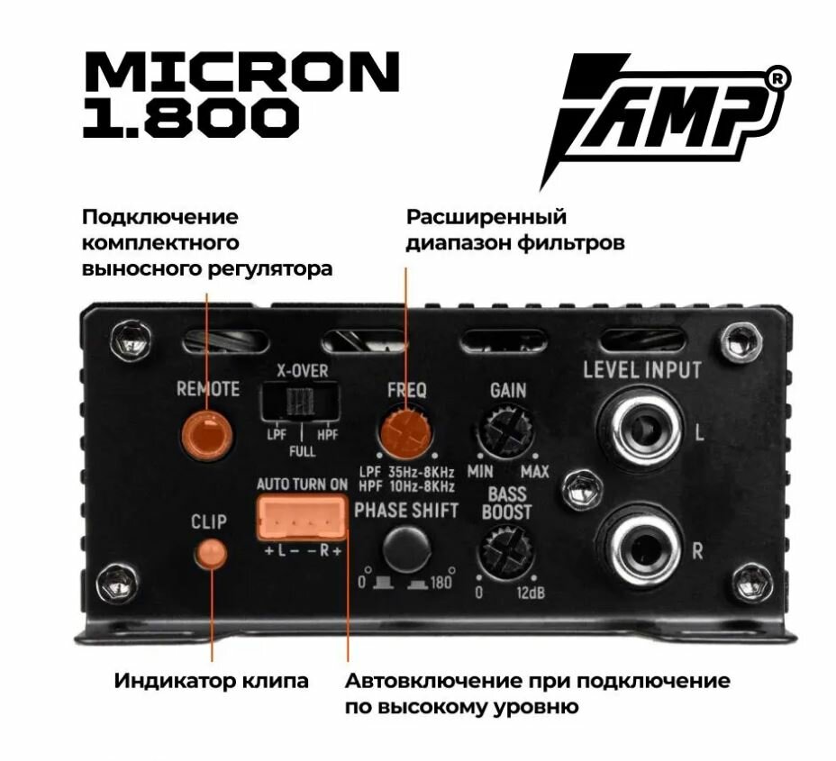 Отзывы на Усилитель автомобильный AMP Micron, для всех моделей, 1 канал, 800Вт