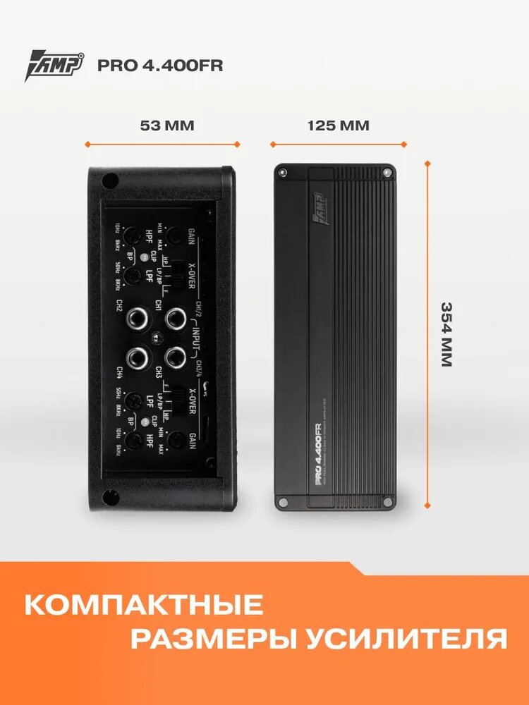 10 цен на Усилитель широкополосный AMP PRO 4.400FR 4800W, 4 канала, мостовой режим, class-D; max 4800w; min 2