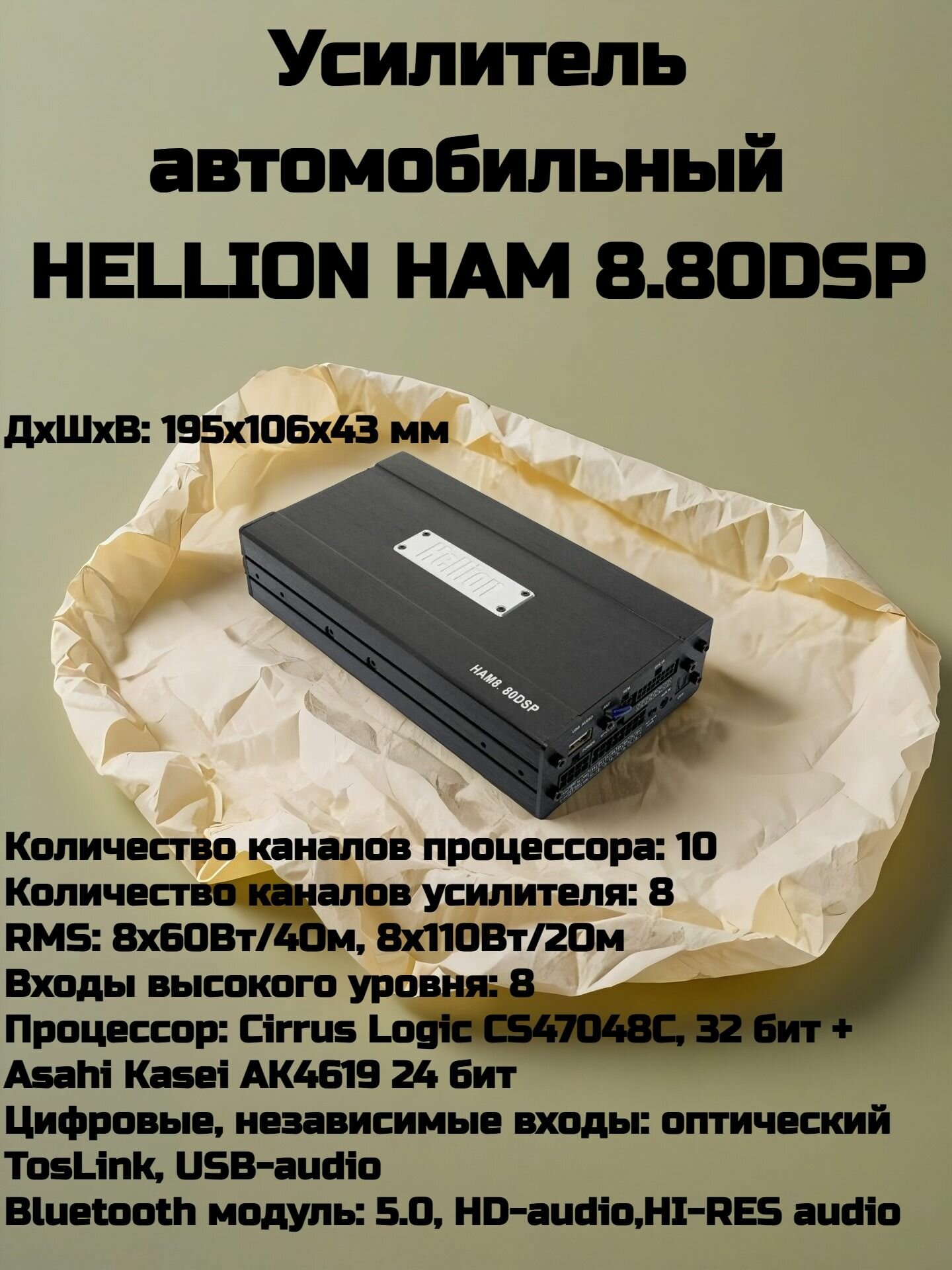 Усилитель автомобильный Hellion HAM8.80DSP / процессорный / 10 каналов dsp информация: