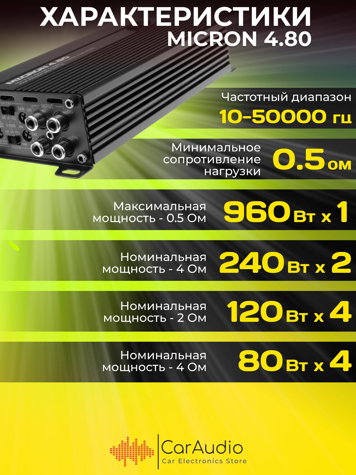 Усилитель автомобильный AMP MICRON 4.80 4 канала информация: