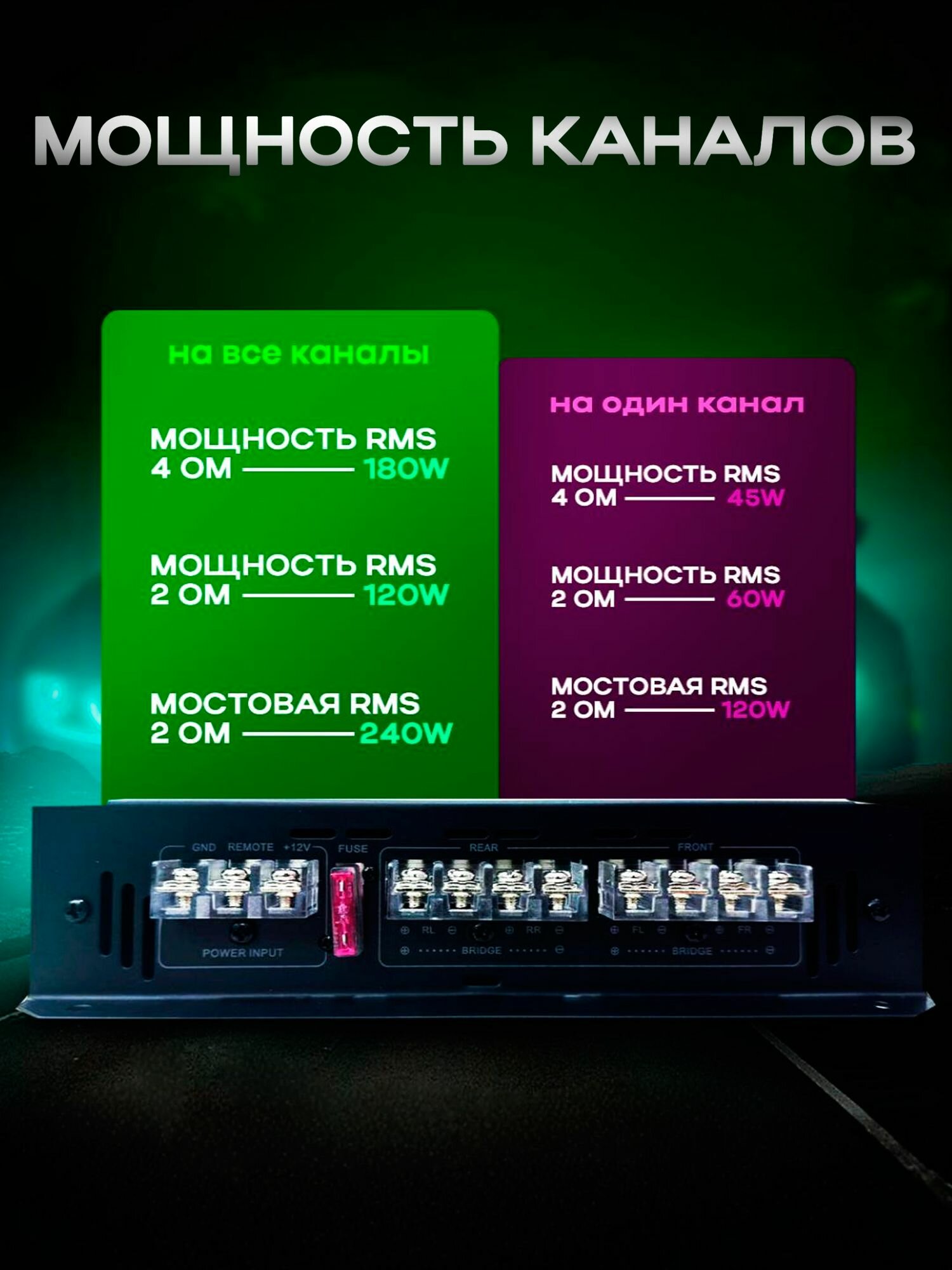 | Комплектация | усилитель 4-х канальный 1 шт; крепеж для установки в машину; шурупы 4 шт; запасной предохранитель 1 шт |