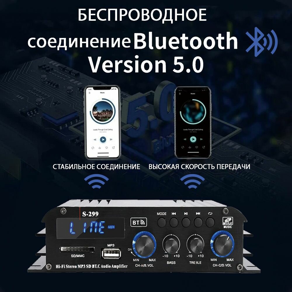 Усилитель звука, S299, усилитель для колонок ,2.1, блютуз 5.3,800BT+800BT информация: