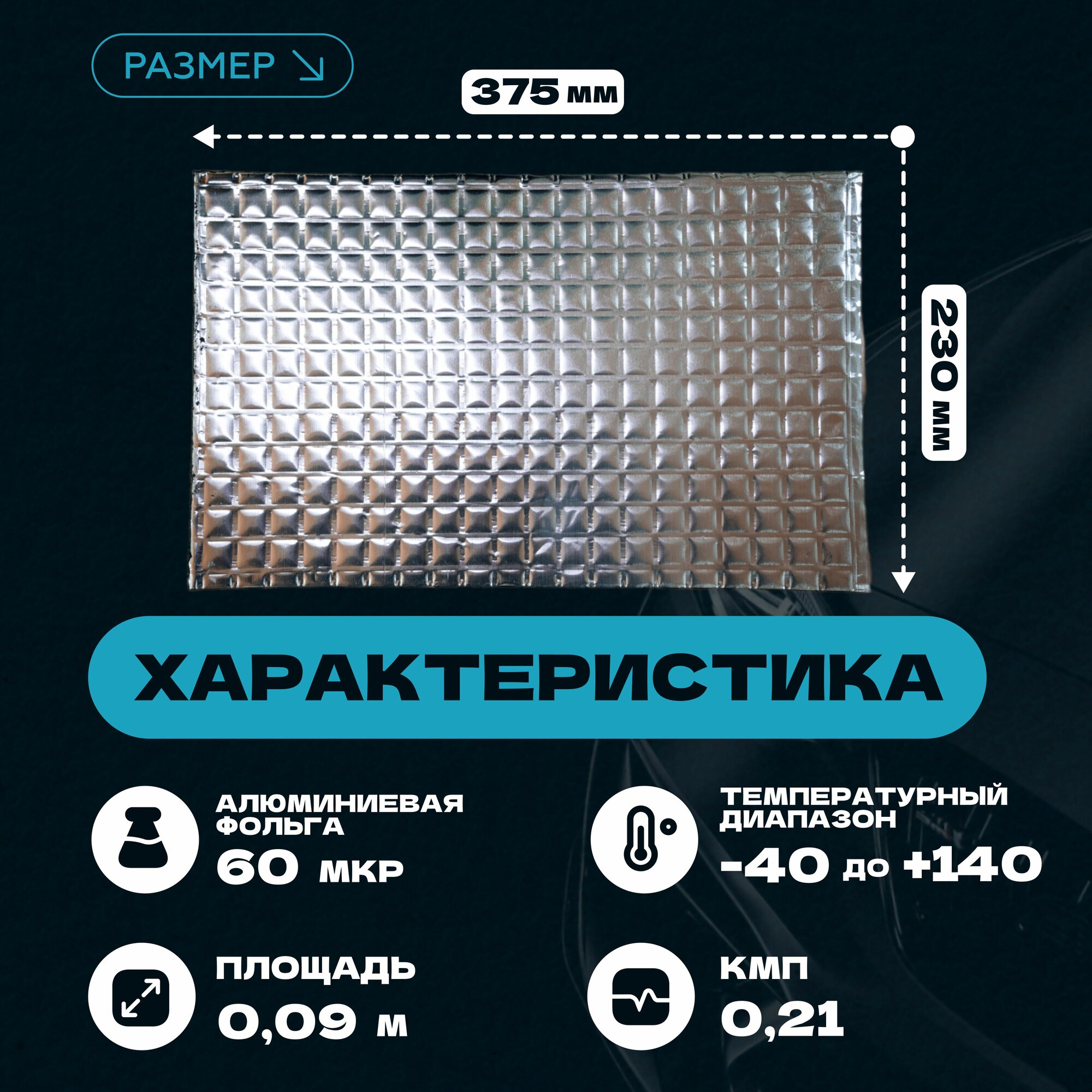 Шумофф Reflex 2 - 36 листов 37.5 см х 23 см Виброизоляция для автомобиля - для потолка, дверей, капота, багажника - толщина 2.0 мм