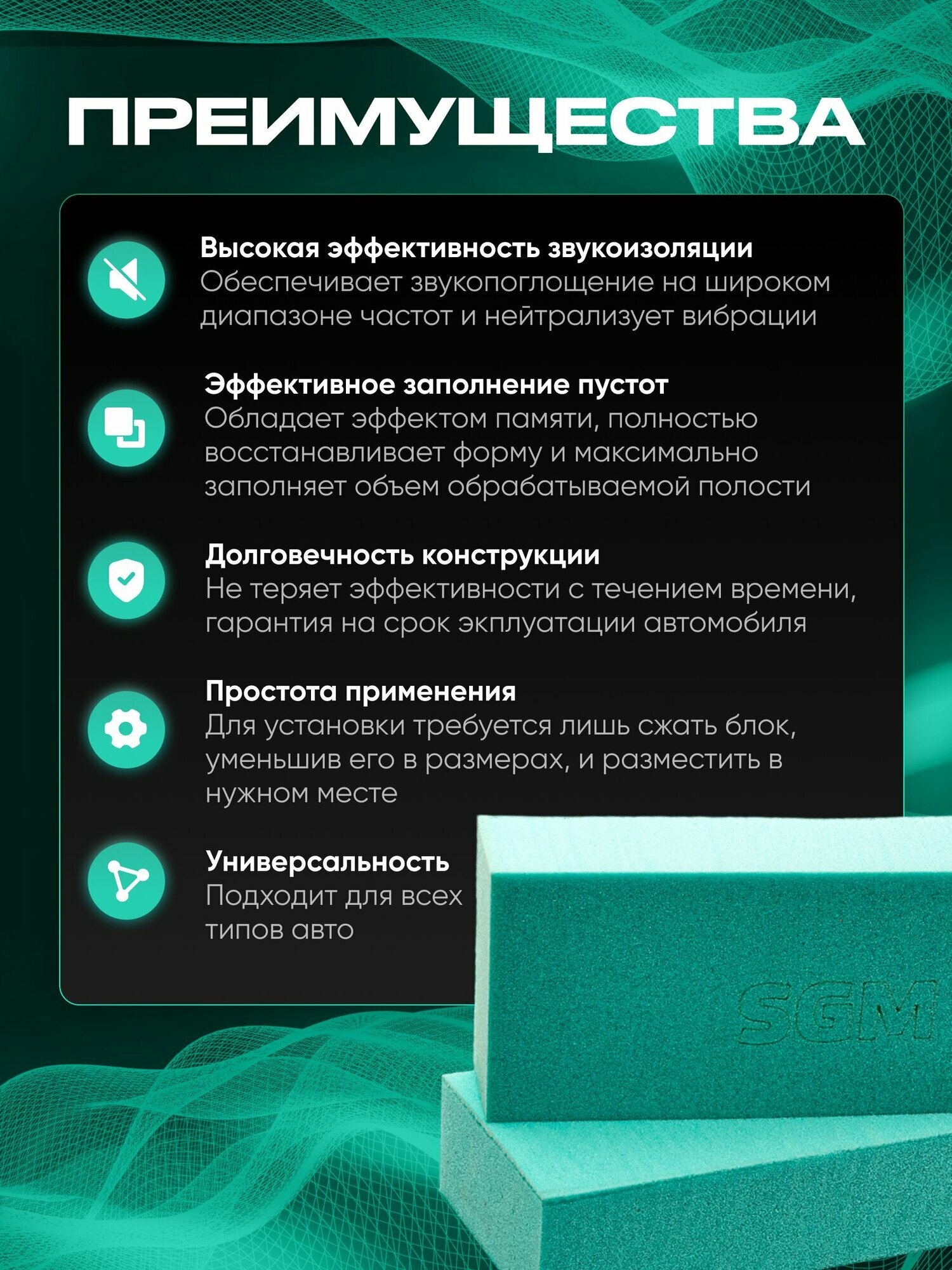 Отзывы на Шумопоглощающий блок SGM для заполнения пустот автомобиля, зеленый / шумоизоляция для авто