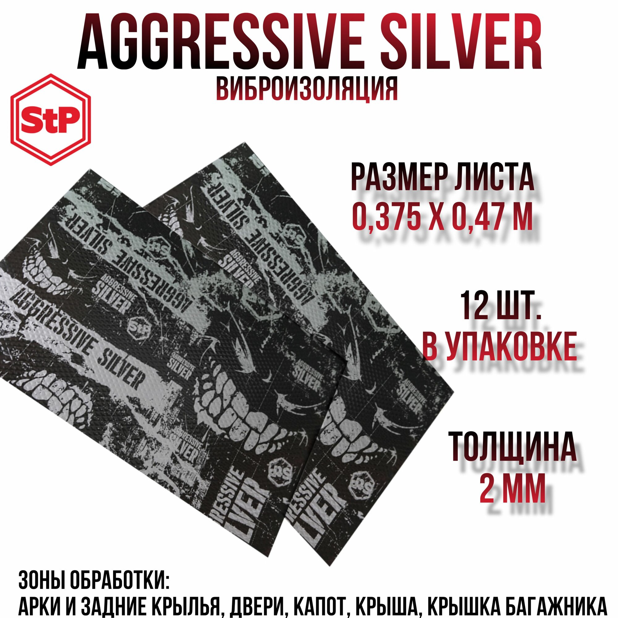 Виброизоляция Stp Aggressive Silver (MINI)/Вибродемпфер СТП Агрессив сильвер мини 12 листов.(37,5*47) информация: