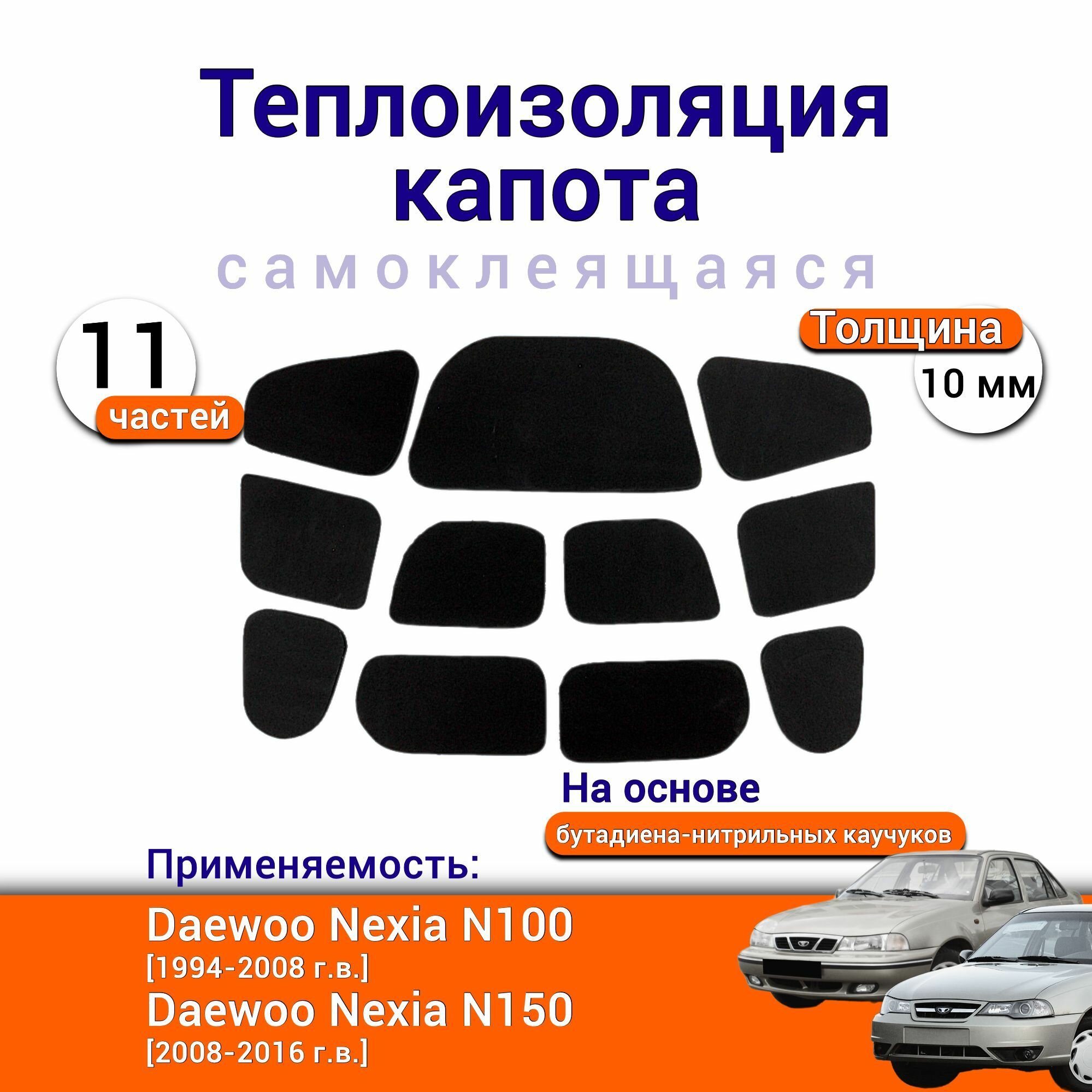 10 цен на Теплоизоляция капота Daewoo Nexia N100 N150 самоклеящаяся на основе вспененного каучука комплект из 11 частей