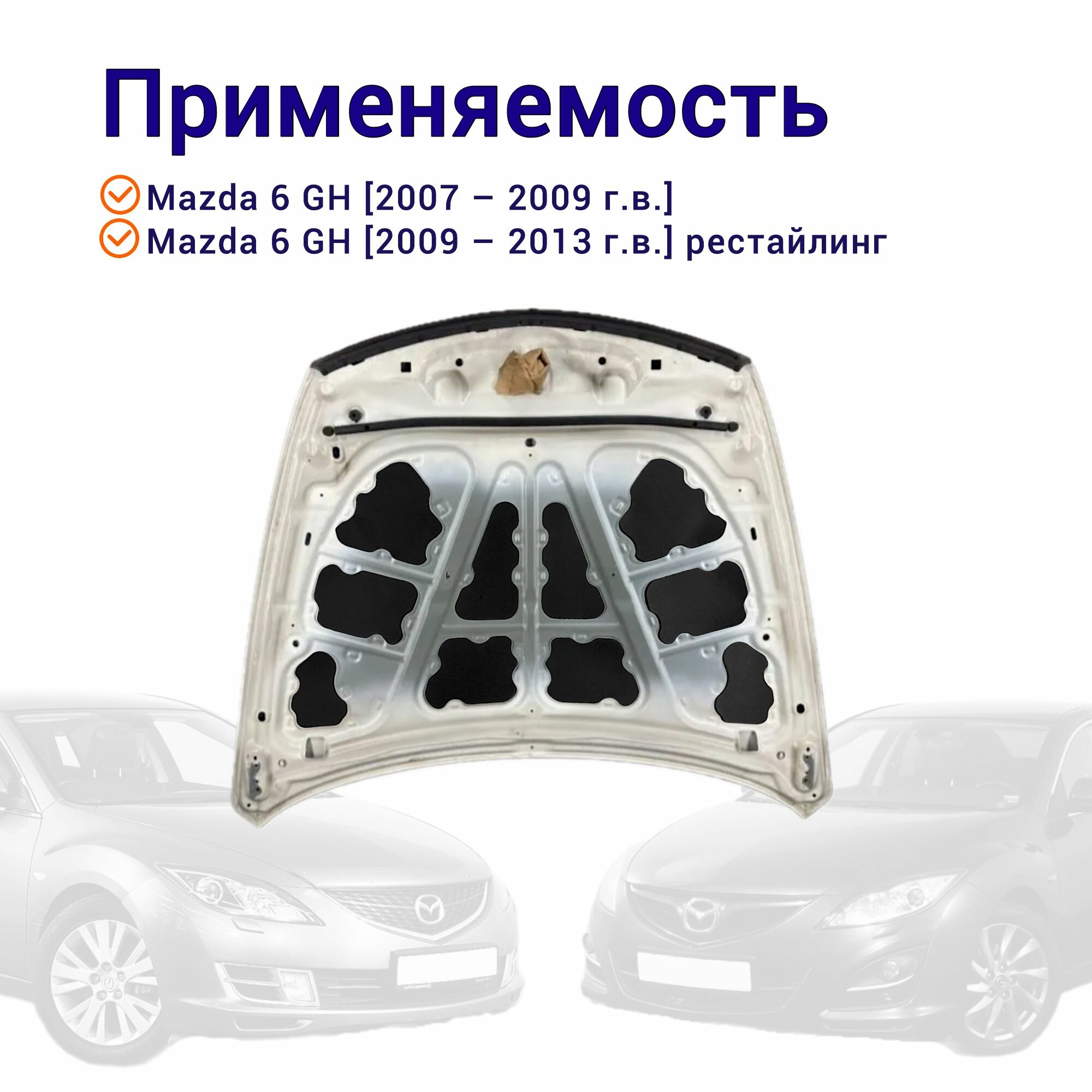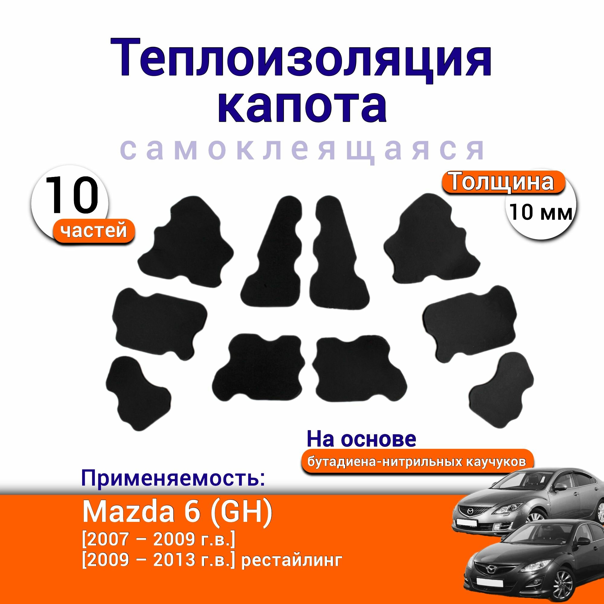 Теплоизоляция капота Mazda 6 GH 2007-2013 самоклеящаяся на основе вспененного каучука комплект из 10 частей информация: