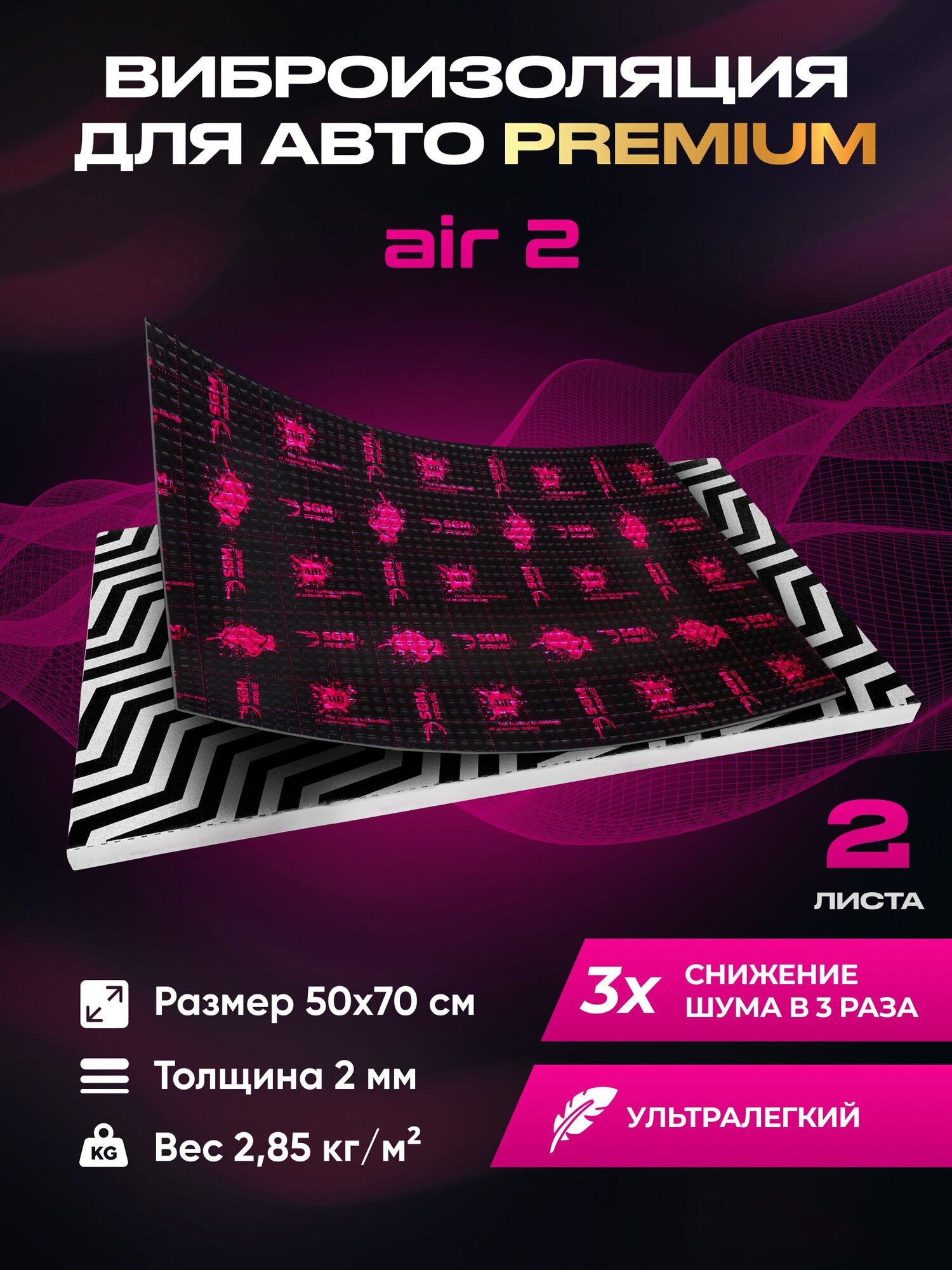 Виброизоляция Premium SGM Prime Аir 2, упаковка- 2 листа (Большие листы 0.5х0.7) /Шумоизоляция автомобиля/комплект самоклеящаяся шумка для авто информация: