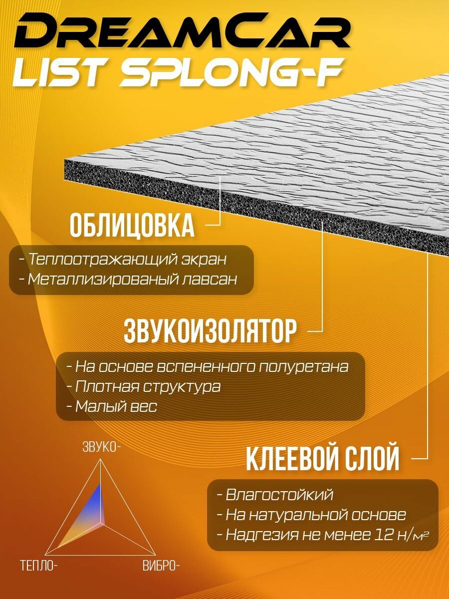 Шумоизоляция для авто с теплоэкраном DreamCar List Splong 8F - 4 листа (100 х 75см) / Теплоизоляция самоклеющаяся 8 информация: