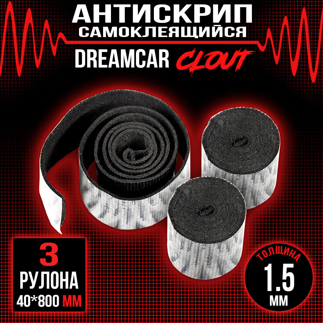 DreamCar Technology Акустическая ткань самоклеящаяся, антискрип DreamCar Clout лента 1.5мм 0.04х0.8м - 3 рулона информация: