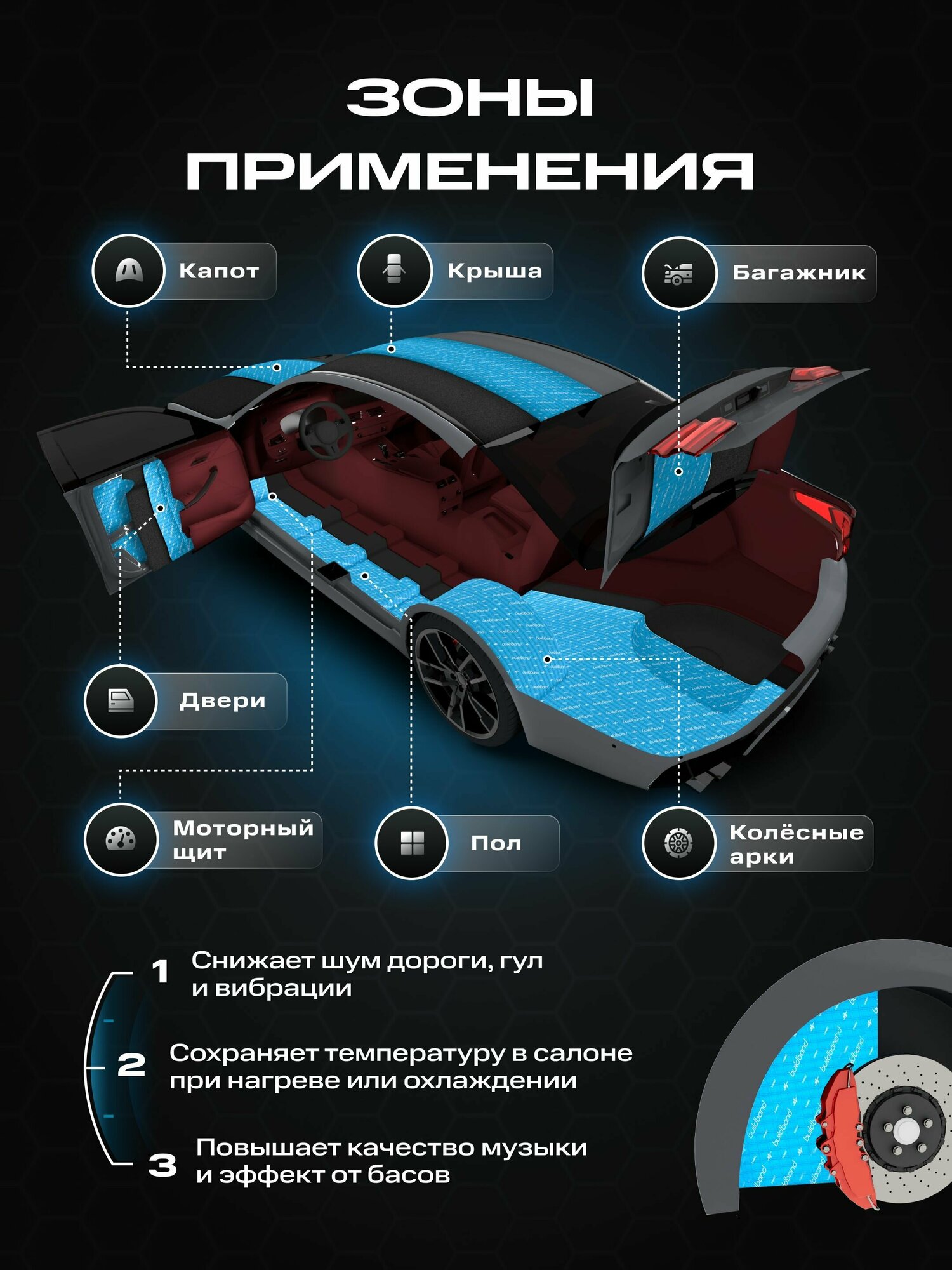 Отзывы на Шумоизоляция автомобиля, buildband 2 мм, комплект 30 листов. Виброизоляция для авто, шумка самоклеящаяся, звукоизоляция