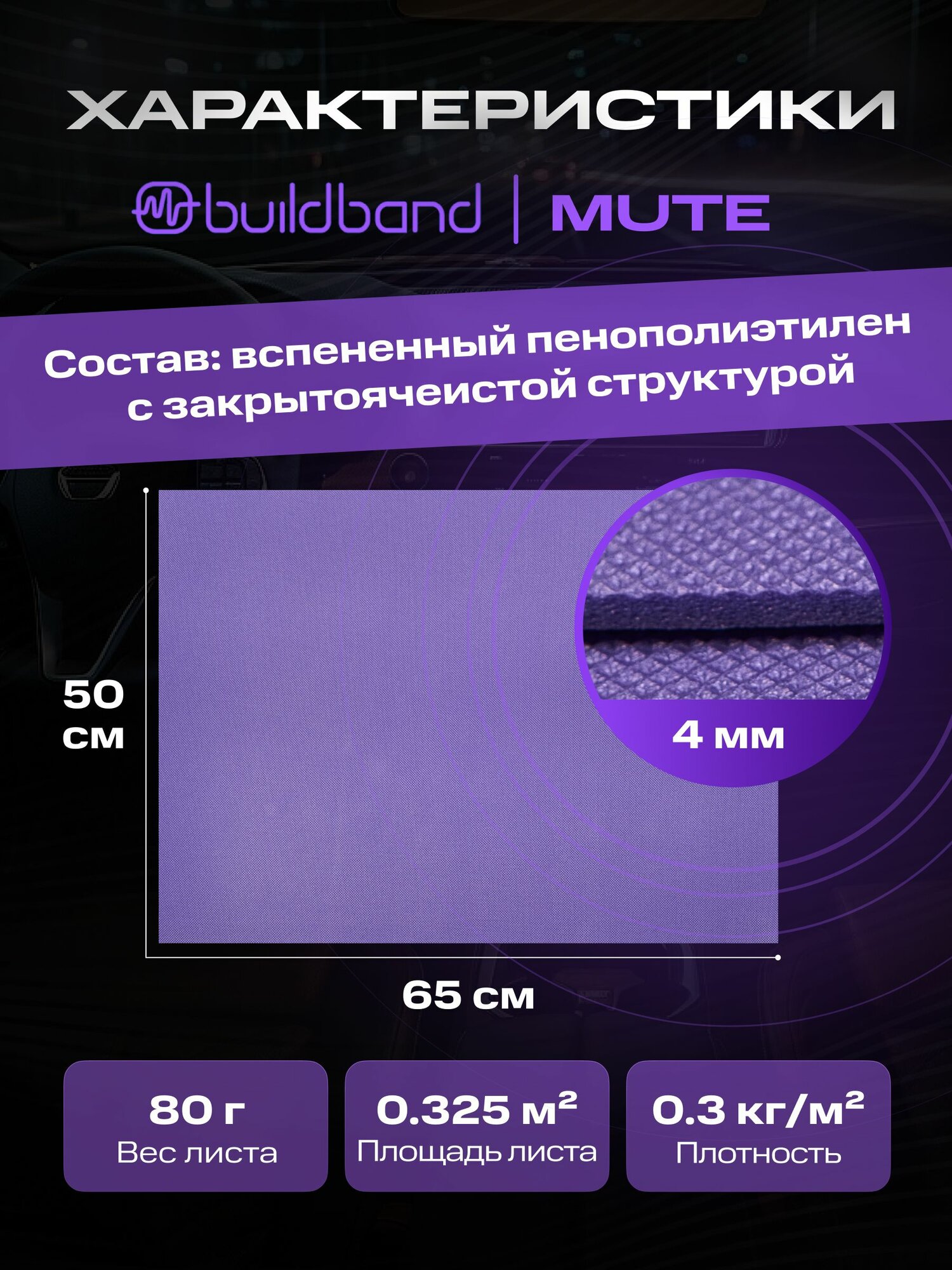 Шумоизоляция автомобиля buildband MUTE, 5 листов. Шумка для авто самоклеящаяся, звукоизоляция информация: