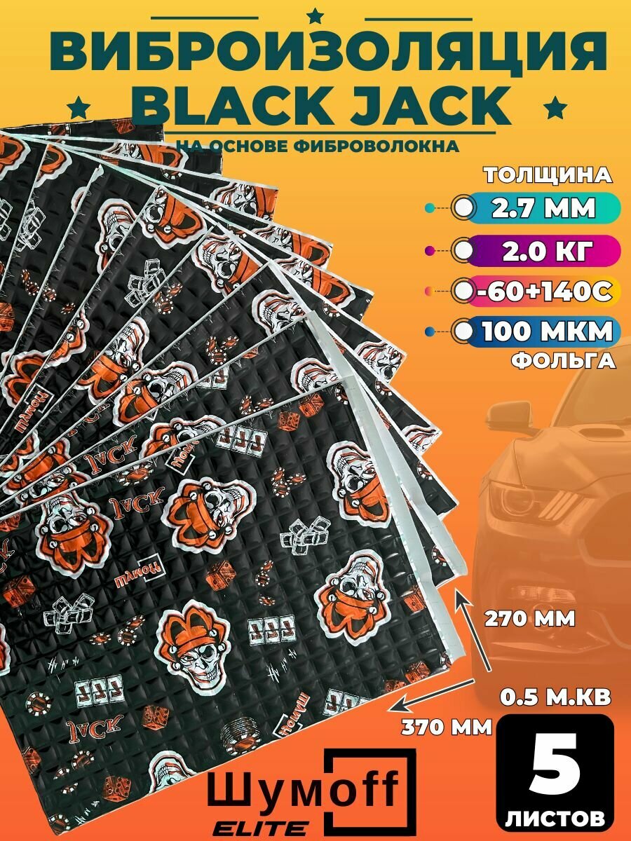 Виброизоляция Шумофф Black Jack - 18 листов, 37см х 27 см, толщина 2,7мм шумоизоляция для авто 3 250 ₽