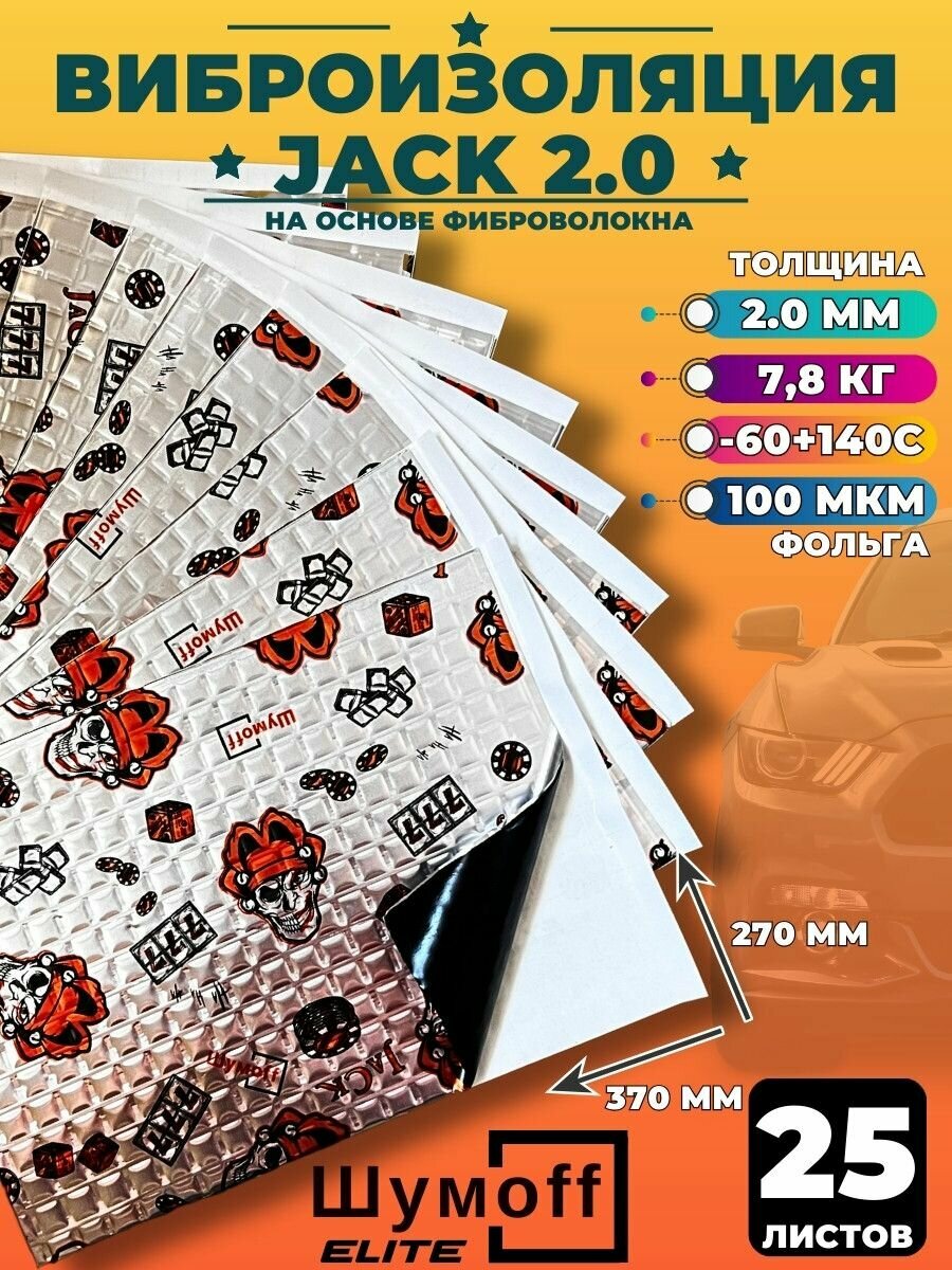 Виброизоляция Шумофф Jack - 25 листов, 37 х 27см; шумоизоляция для автомобиля 2мм информация: