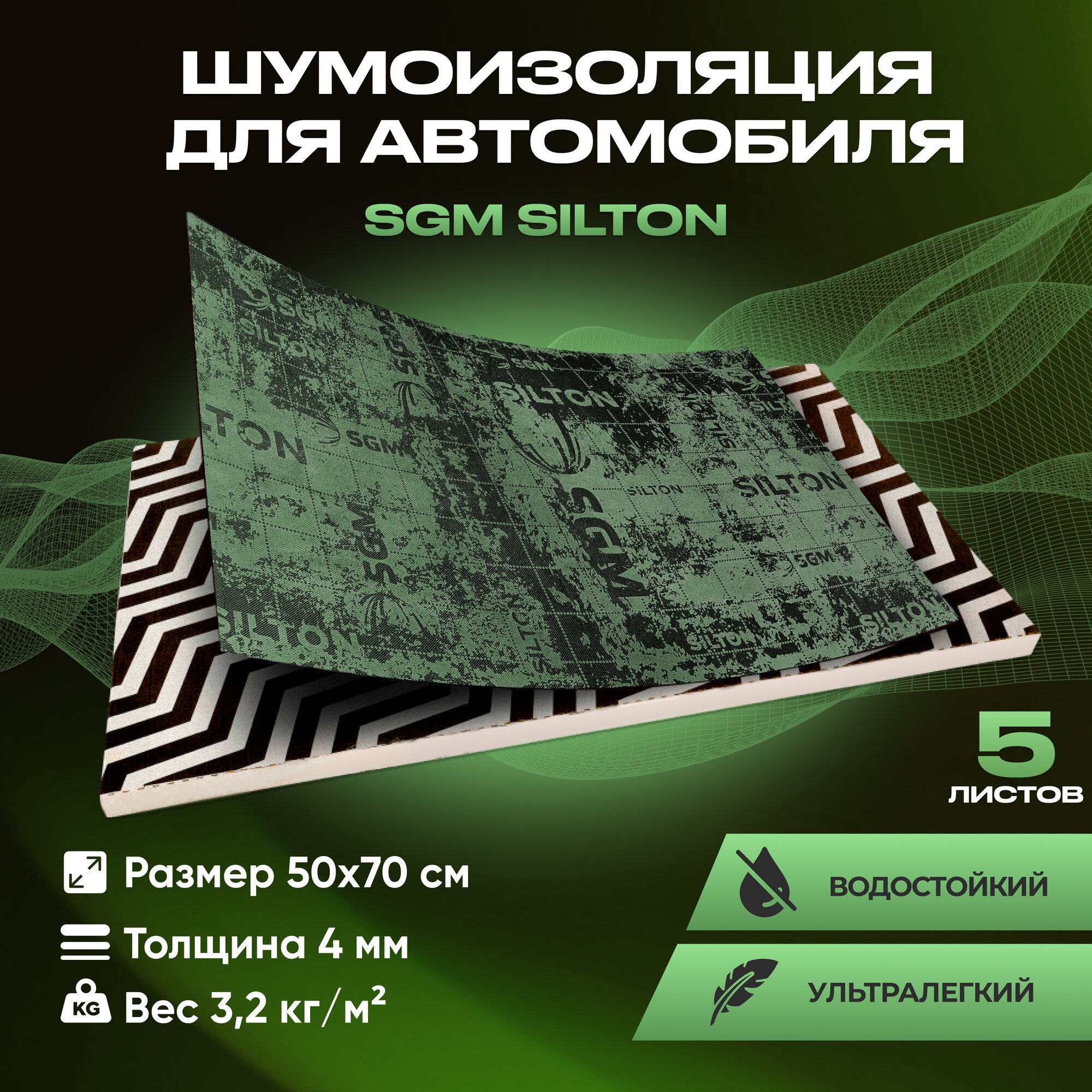 10 цен на Шумоизоляция для автомобиля SGM Silton набор 5 листов (большие листы 0.5х0.7м/Толщина 4 мм). Влагостойкая шумка/звукоизоляция