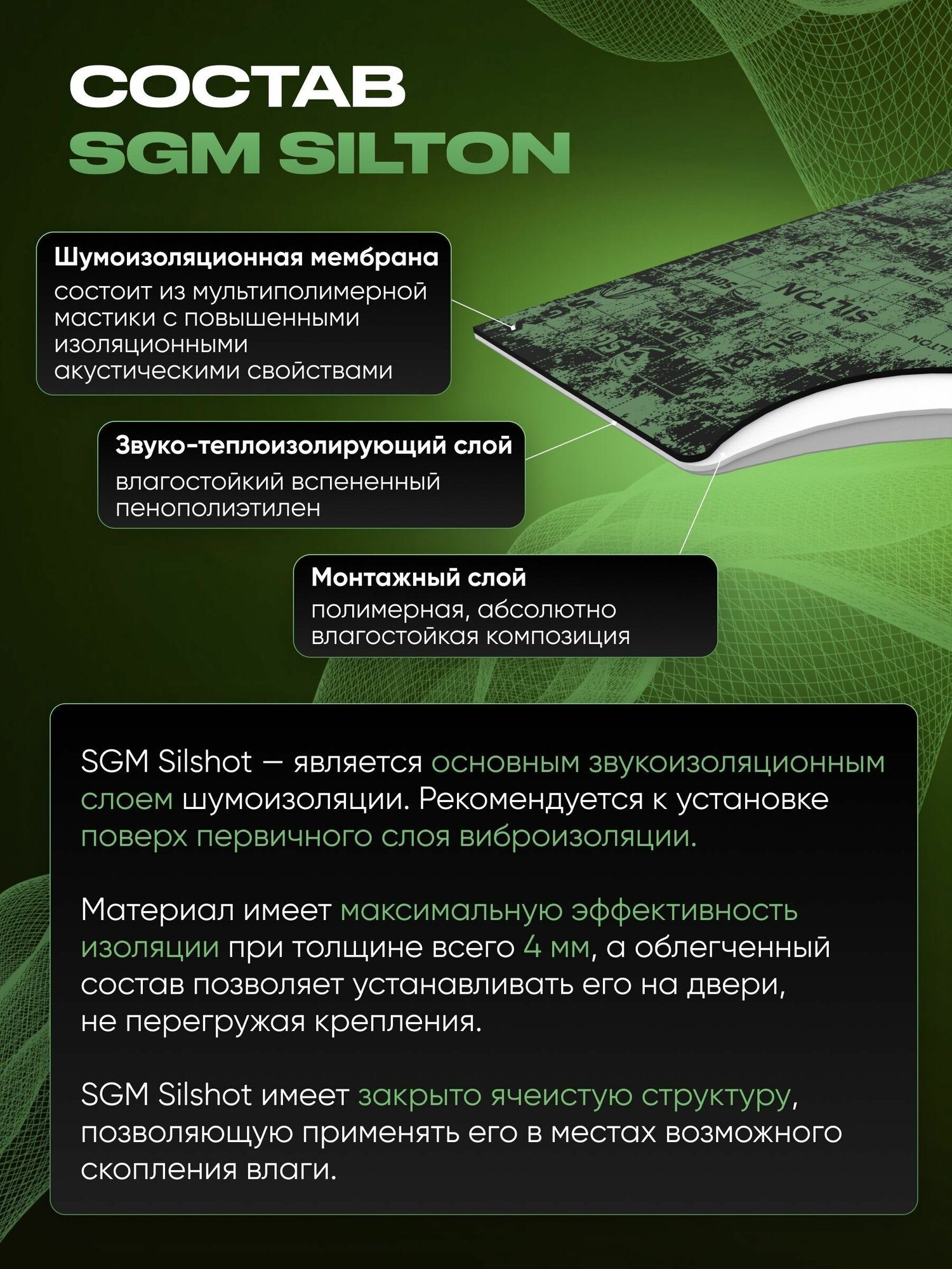 Шумоизоляция для автомобиля SGM Silton набор 5 листов (большие листы 0.5х0.7м/Толщина 4 мм). Влагостойкая шумка/звукоизоляция информация:
