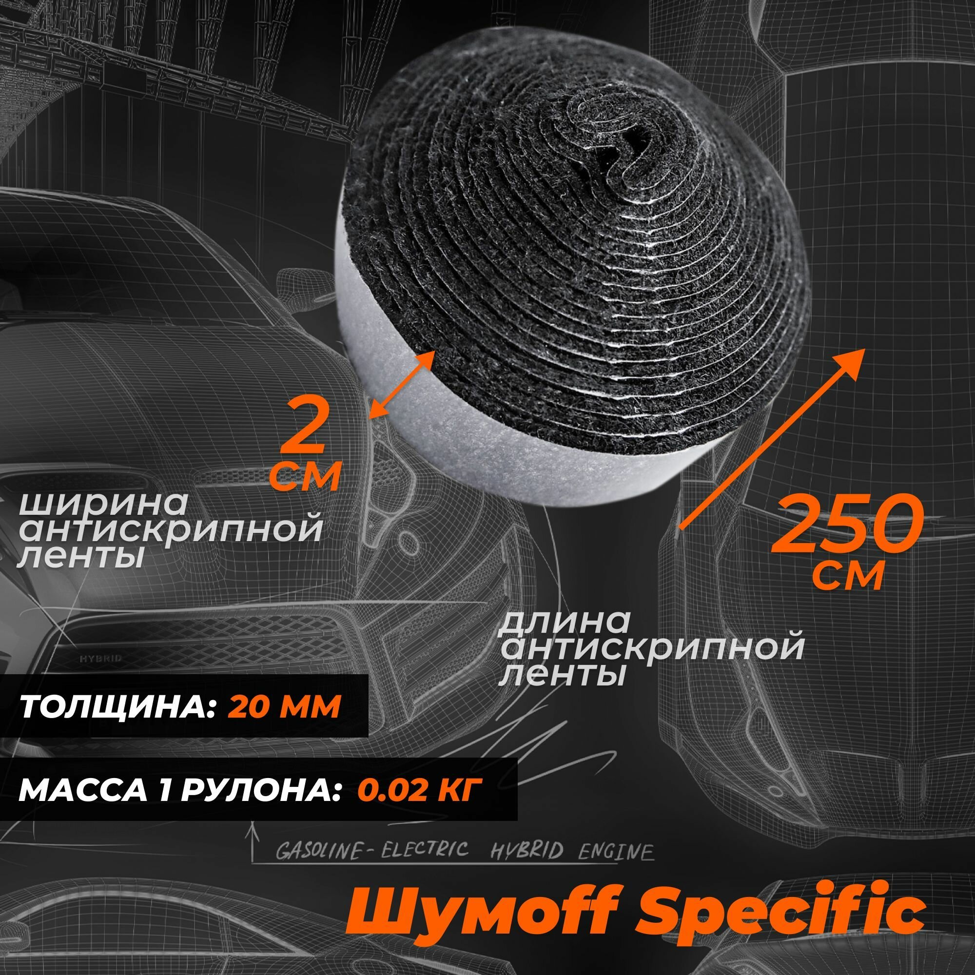 Отзывы на Лента антискрип самоклеящаяся для шумоизоляции авто Шумофф Specific - 4 шт / Общая длина 12.5 м