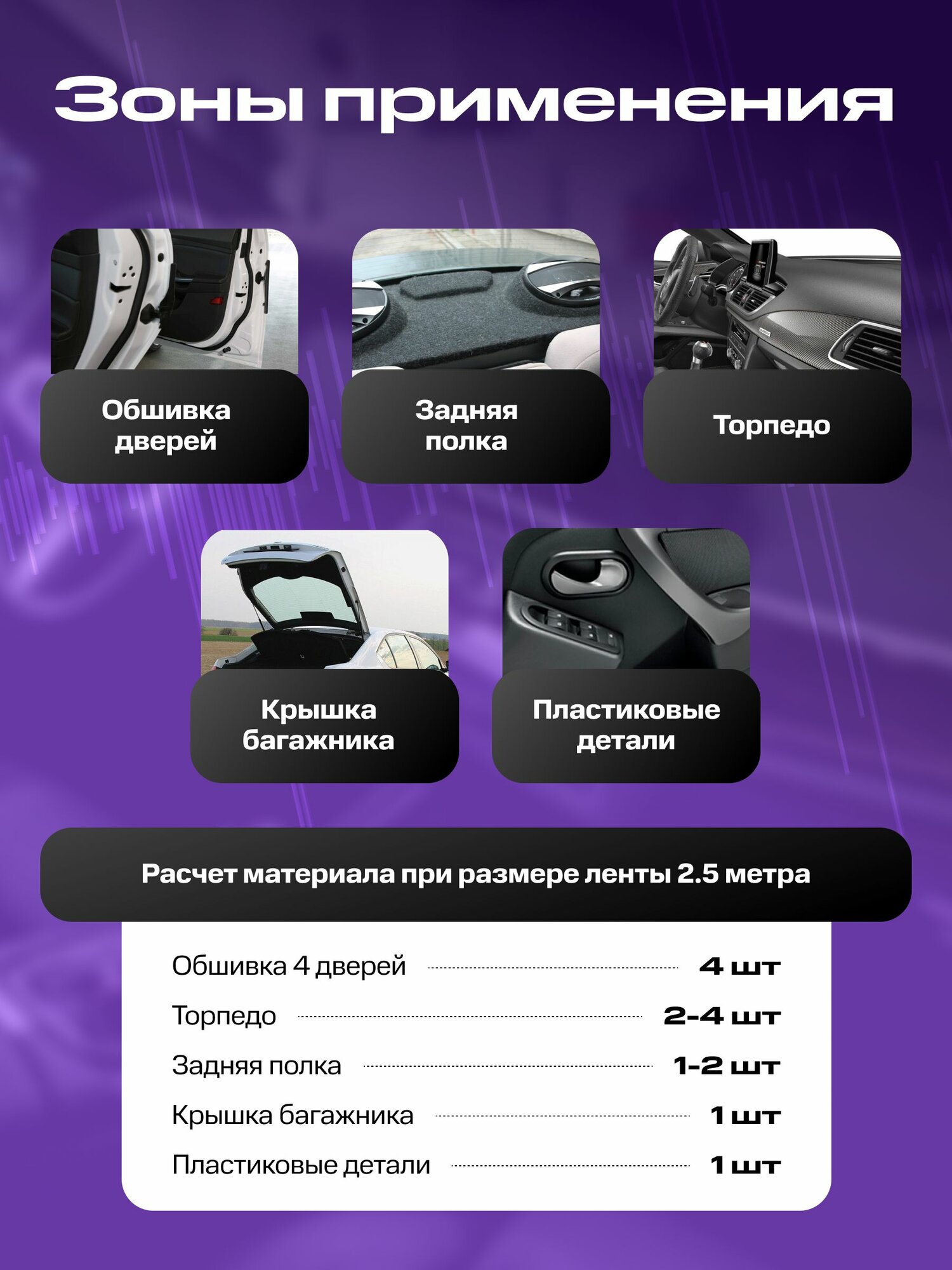 | Место применения | для багажника / для дверей / для пола / для приборной панели / шумоизоляция |