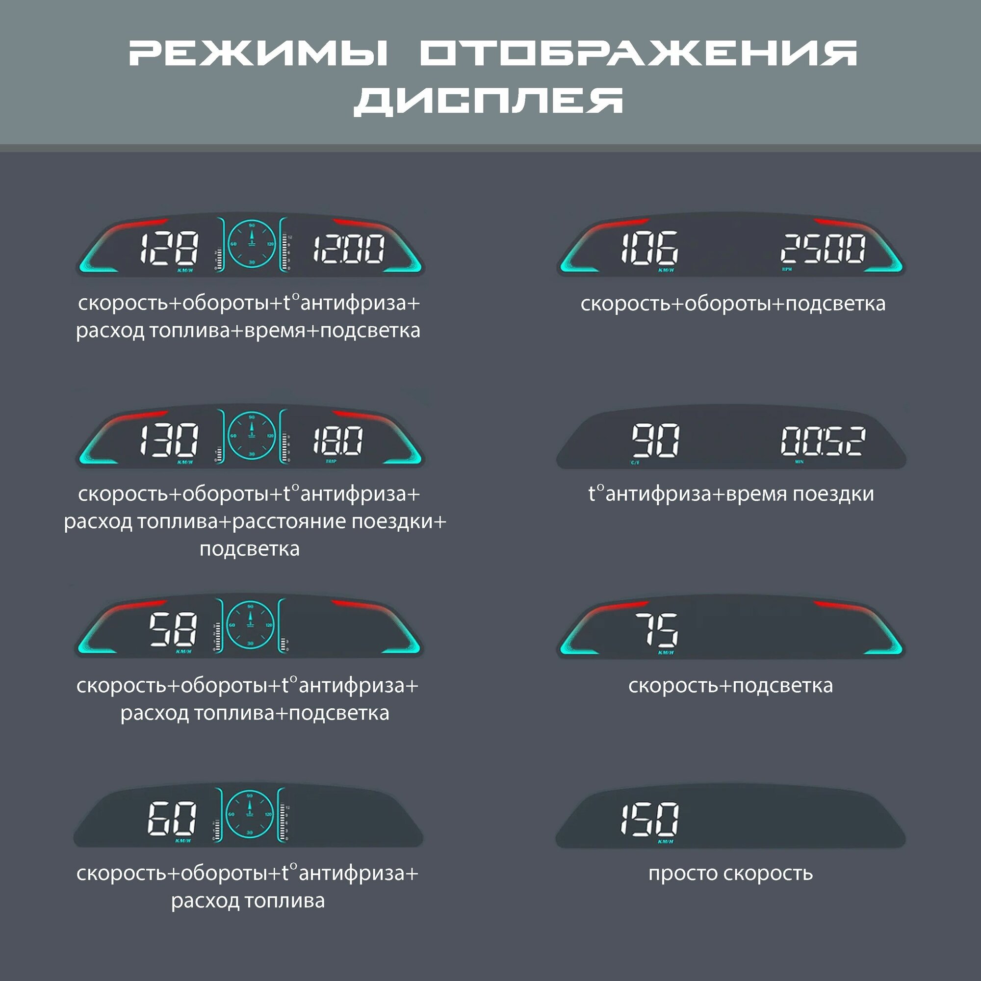 10 цен на Бортовой компьютер GP PRO-TECH, подключение через OBD2, спидометр, тахометр, температура ОЖ, расход топлива