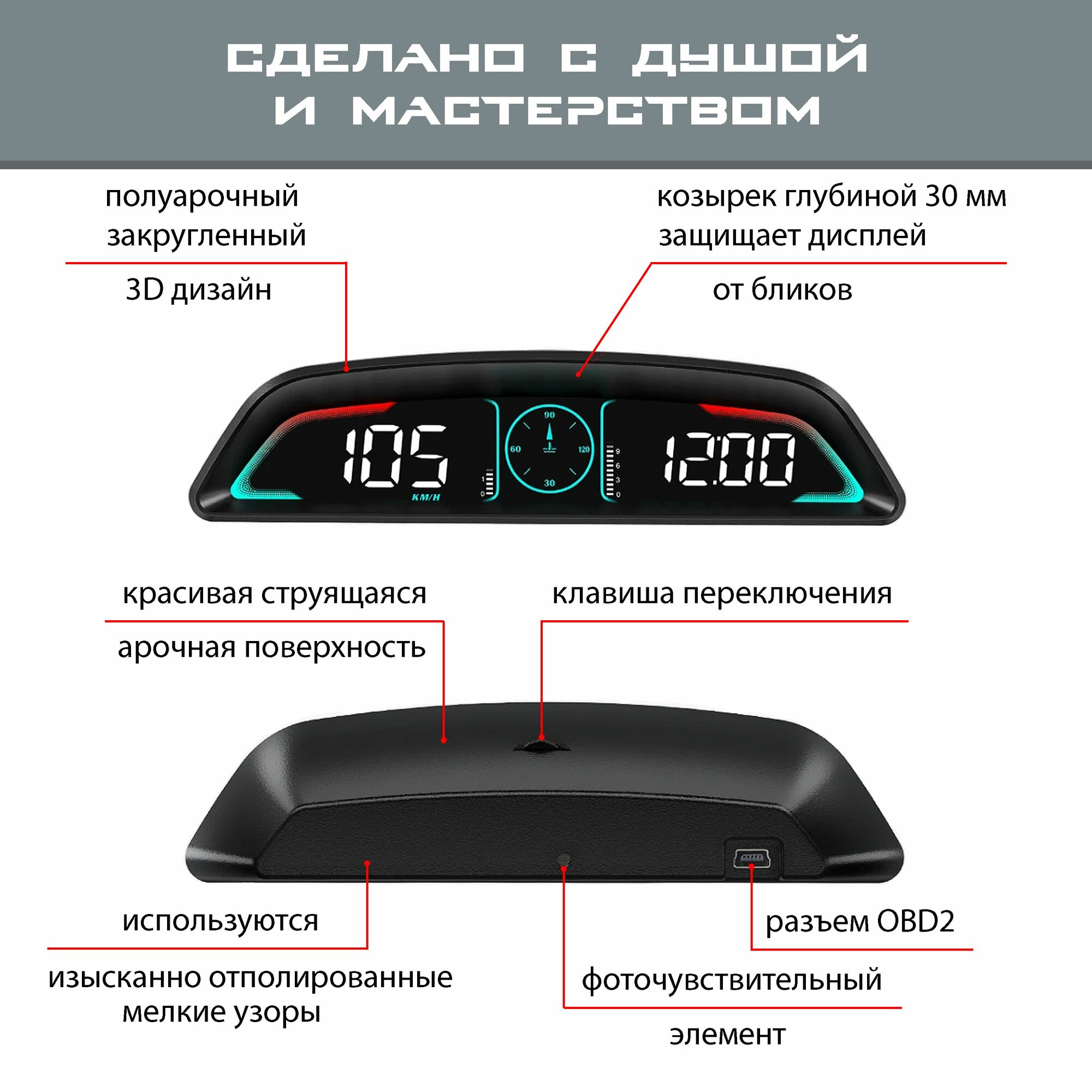 Бортовой компьютер GP PRO-TECH, подключение через OBD2, спидометр, тахометр, температура ОЖ, расход топлива информация:
