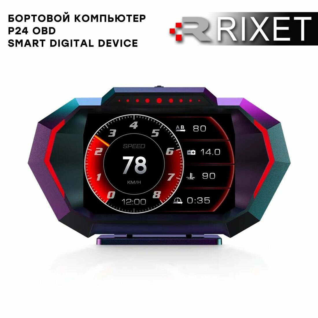 10 цен на Бортовой компьютер Rixet HUD P24 obd2, GPS (чтение и сброс ошибок, цифровой спидометр, вольтметр, тахометр, расход топлива, температура охлаждающей жидкости, акселерометр)