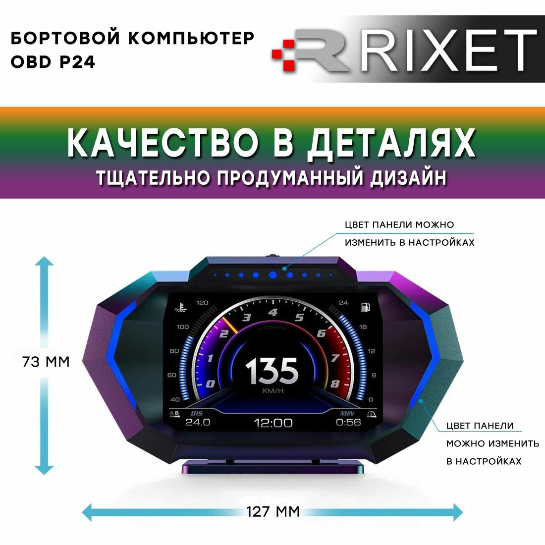 Отзывы на Бортовой компьютер Rixet HUD P24 obd2, GPS (чтение и сброс ошибок, цифровой спидометр, вольтметр, тахометр, расход топлива, температура охлаждающей жидкости, акселерометр)
