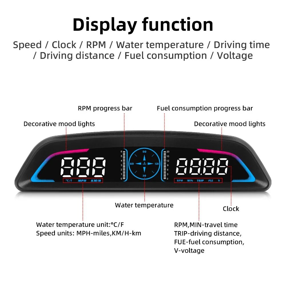 B3 Проекционный дисплей OBD2 Smart Car HUD Цифровой спидометр Охранная сигнализация Об/мин Температура воды Тахометр Часы Автомобильный заказ, B3