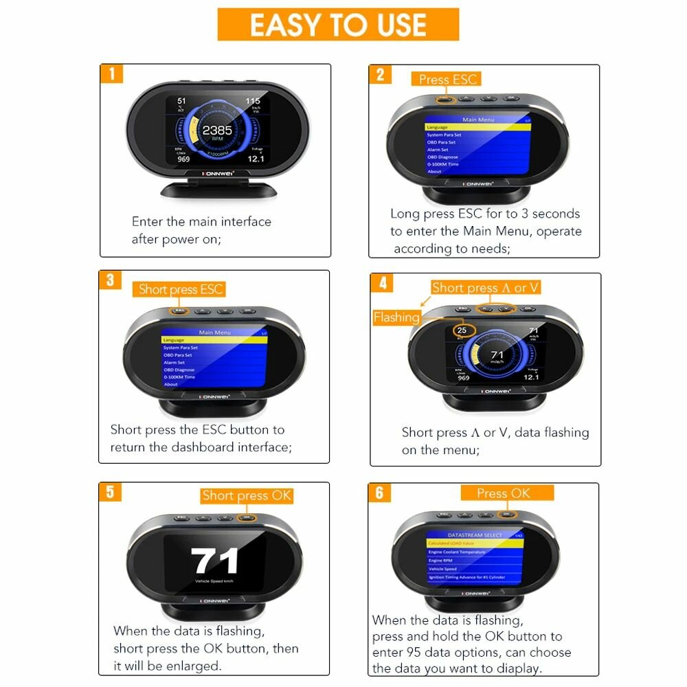 Отзывы на KONNWEI KW206 Автомобильный OBD2 HUD Цифровой измерительный прибор Автомобильный интеллектуальный маршрутный компьютер