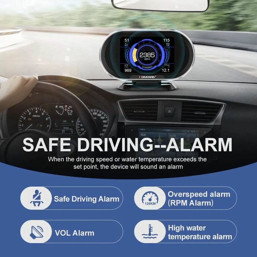 Автомобильный сканер OBD2 KONNWEI KW206 / Дисплей HUD Head Up/Датчик расхода топлива автомобиля, температуры воды информация: