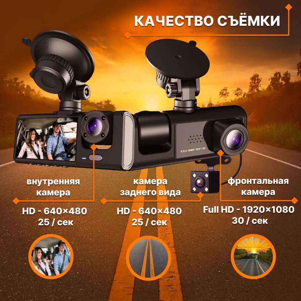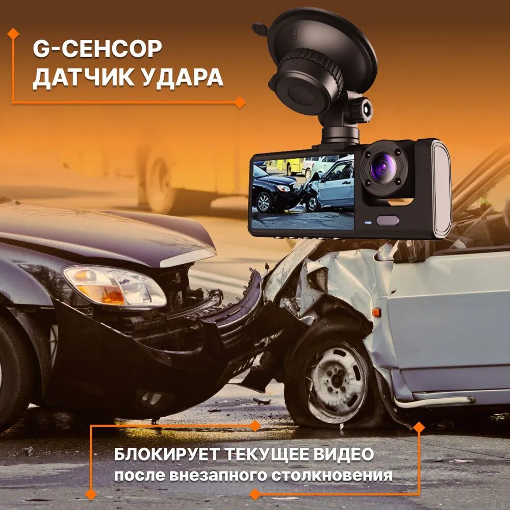 Автомобильный видеорегистратор, 3 камеры, Full HD, с G-датчиком информация: