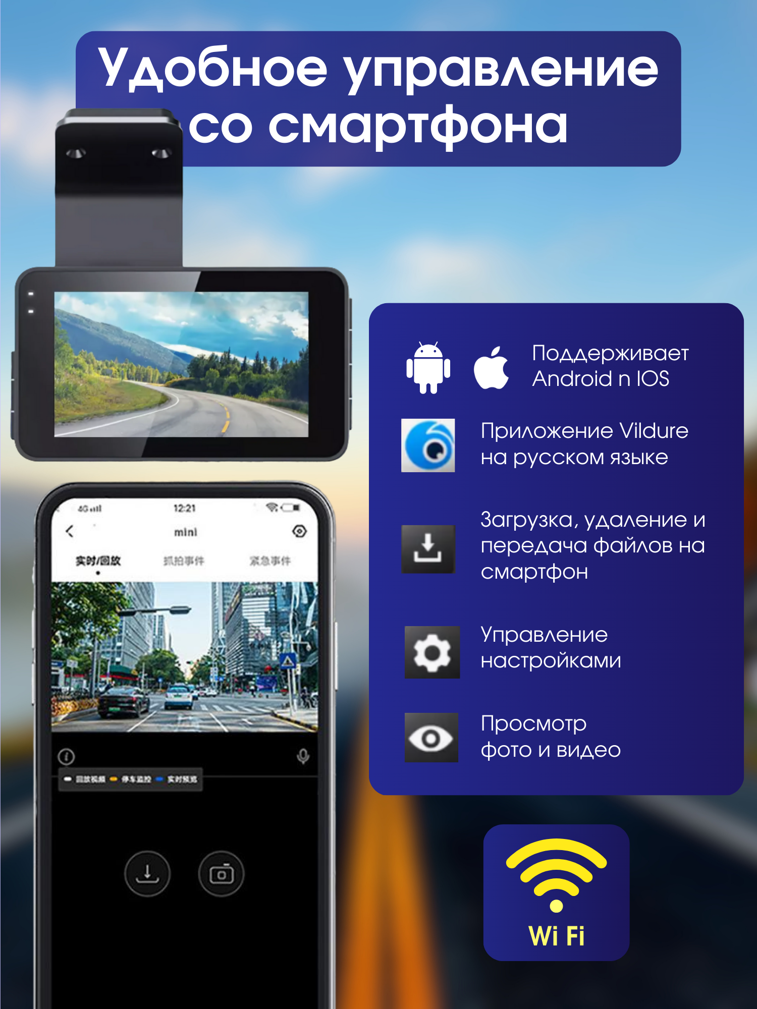 Видеорегистратор для автомобиля c Wi-Fi