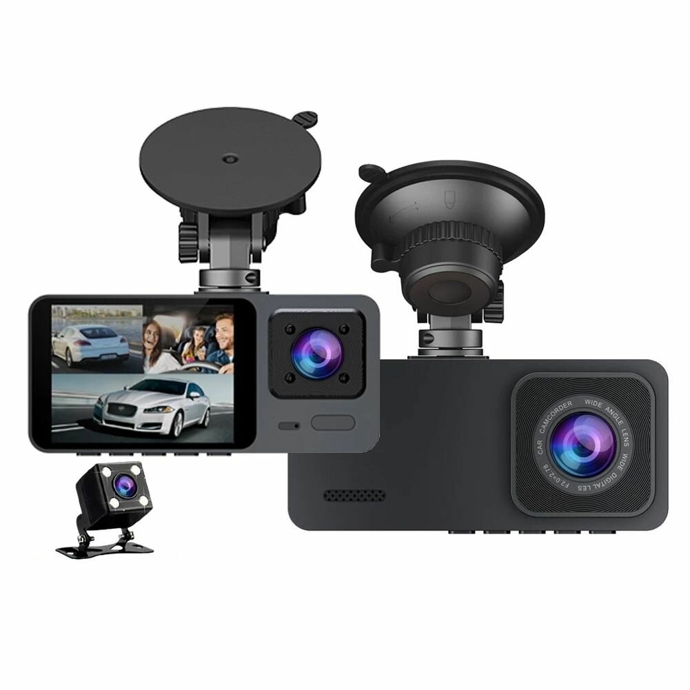 10 цен на Видеорегистратор, 3 камеры, Full HD, G-сенсор, выносная камера, черный