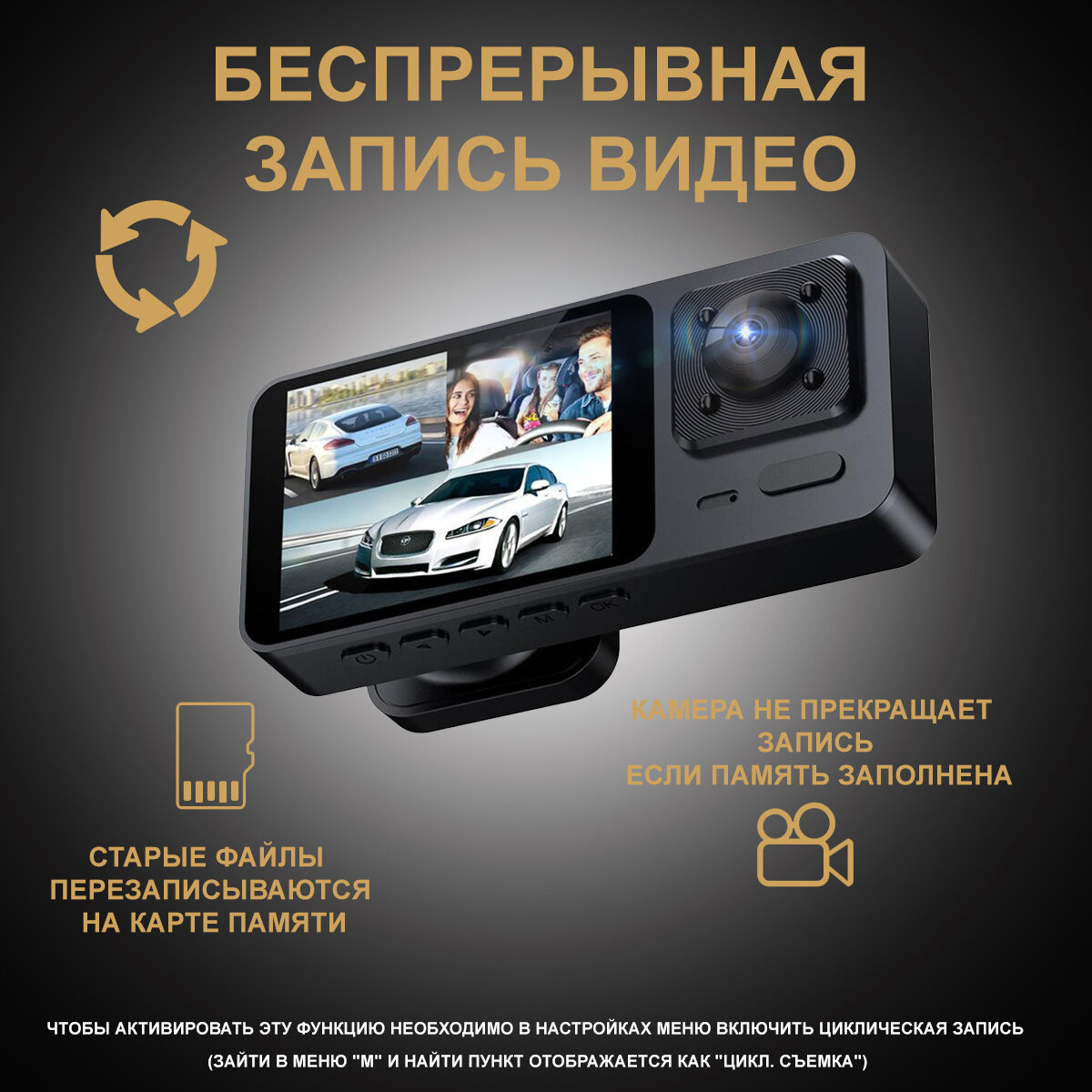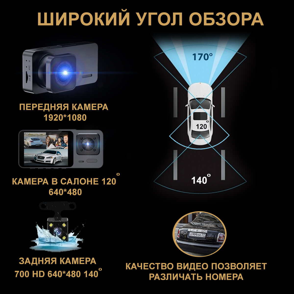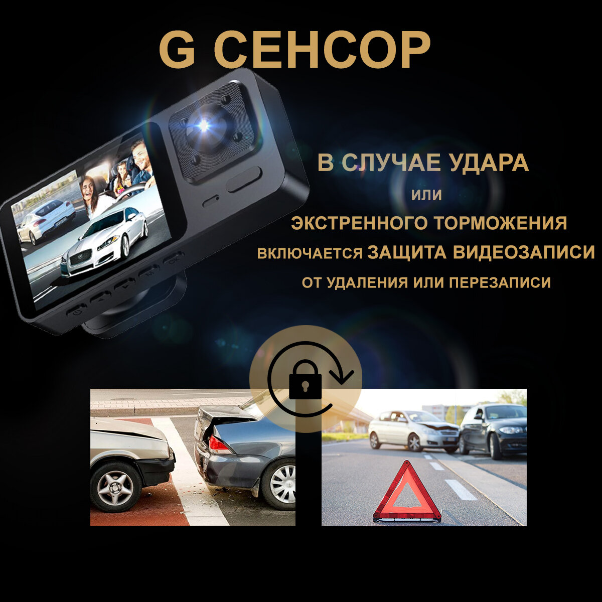 Отзывы на Видеорегистратор автомобильный, с 3-мя камерами, G-сенсор, циклическая запись, чёрный