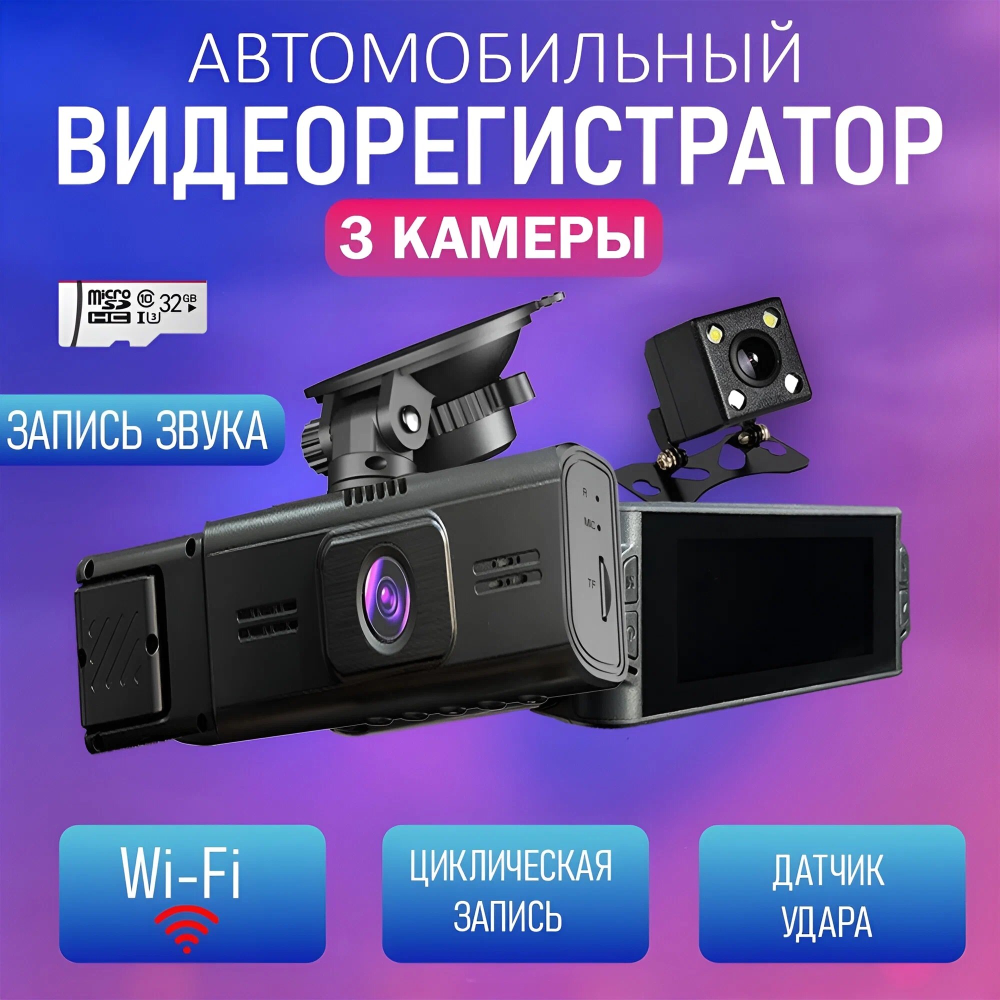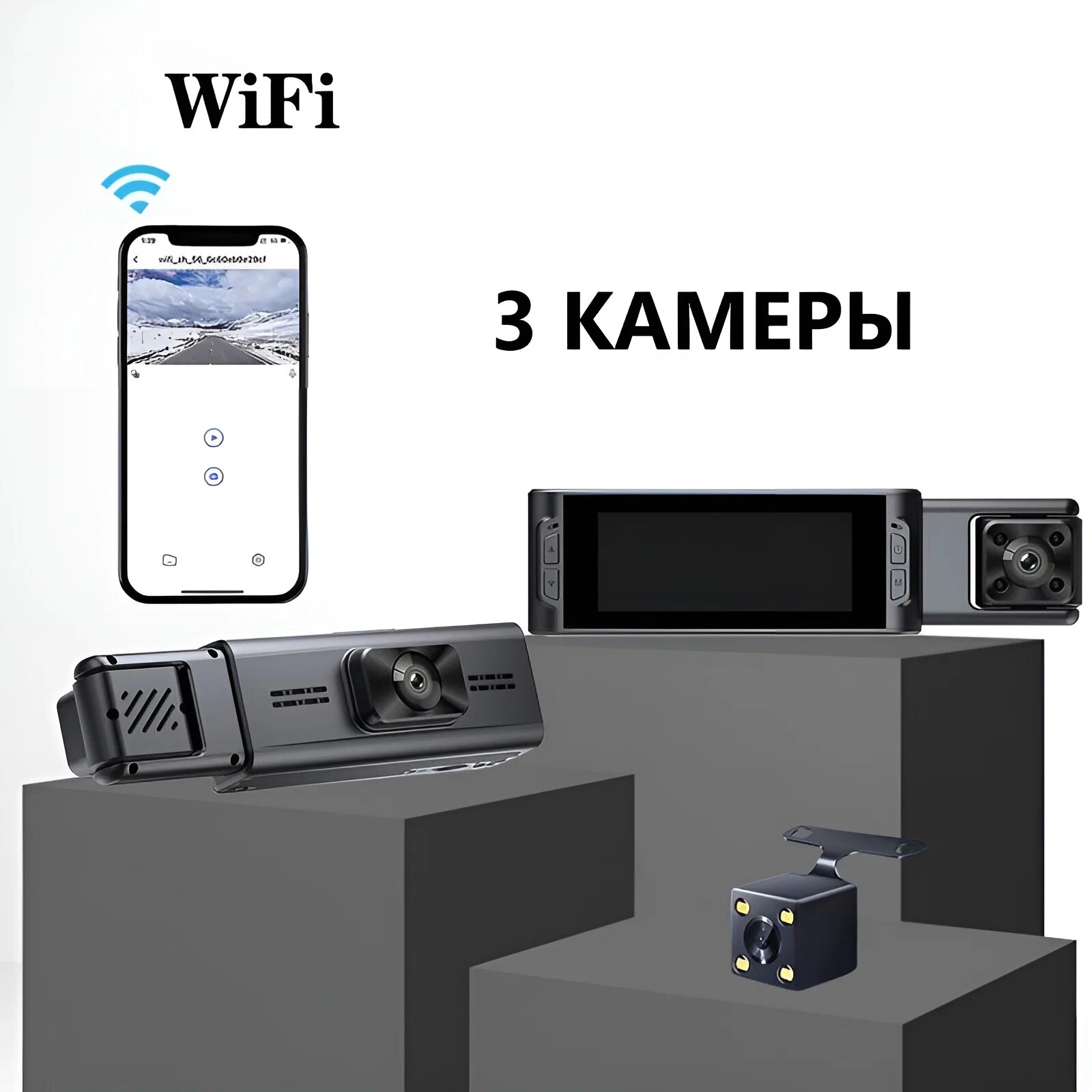 10 цен на Видеорегистратор WI-FI 3 Камеры 3,16 дюймов Разрешение HD 1920х1080 G-сенсор Запись звука, времени, даты CAR DVR S18