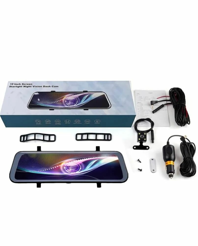 Видеорегистратор для автомобиля зеркало, 10" сенсорный экран, Full HD информация: