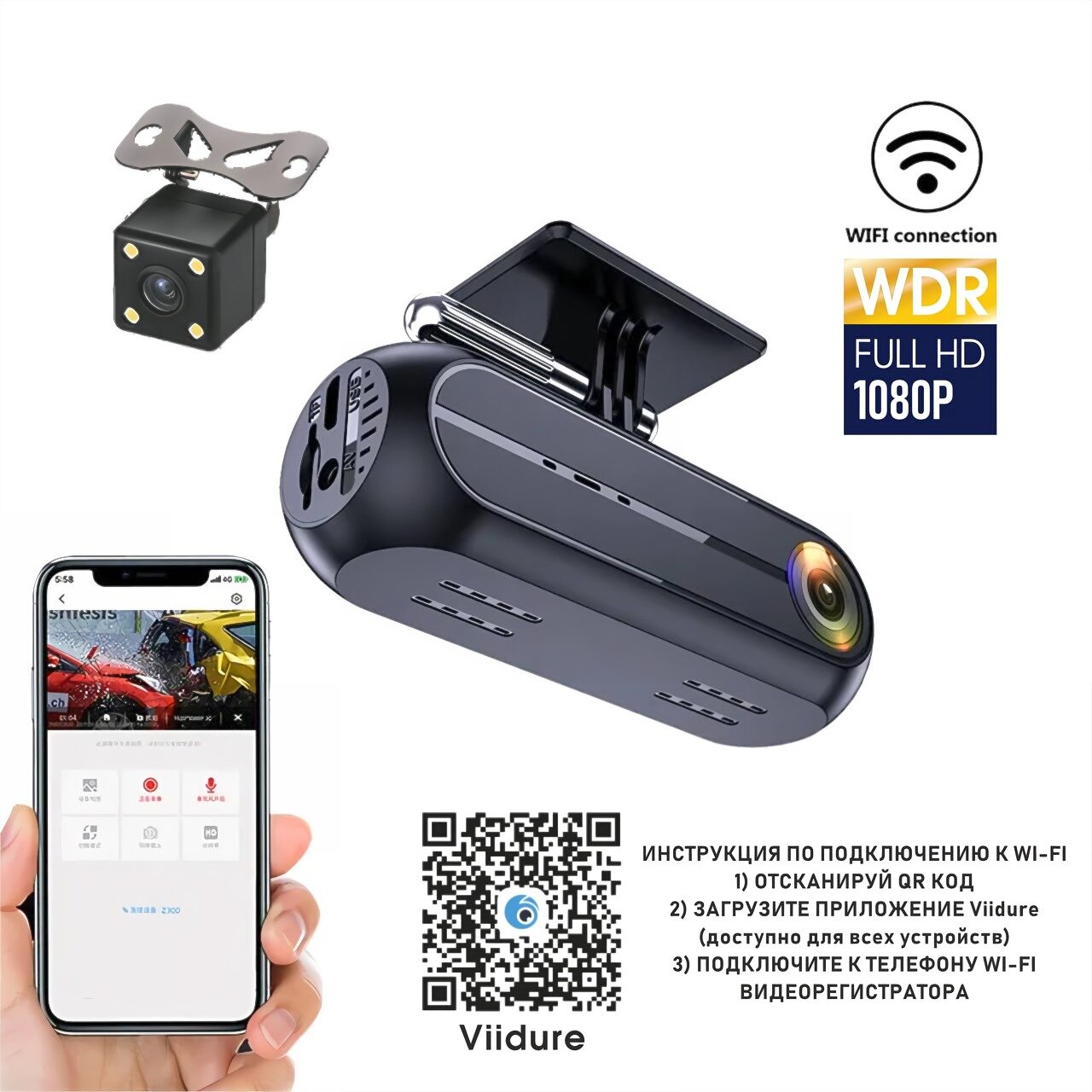 Автомобильный Wi-Fi видеорегистратор с FULL HD разрешением с дополнительной камерой заднего вида / Удобное управление со смартфона информация: