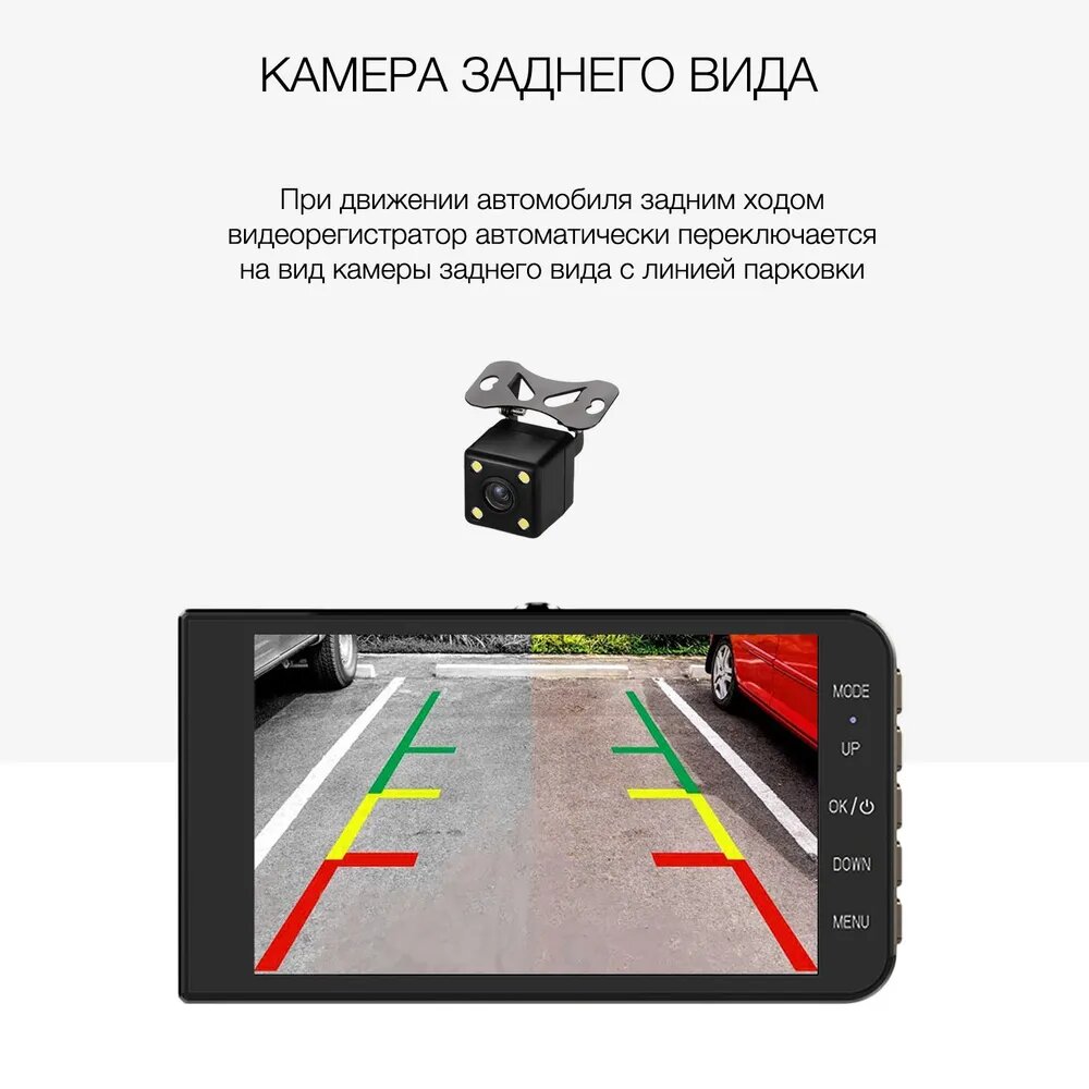 Автомобильный видеорегистратор с камерой заднего вида / Full HD разрешение / 2 камеры / G-Sensor / HD экран / Ночное видение информация: