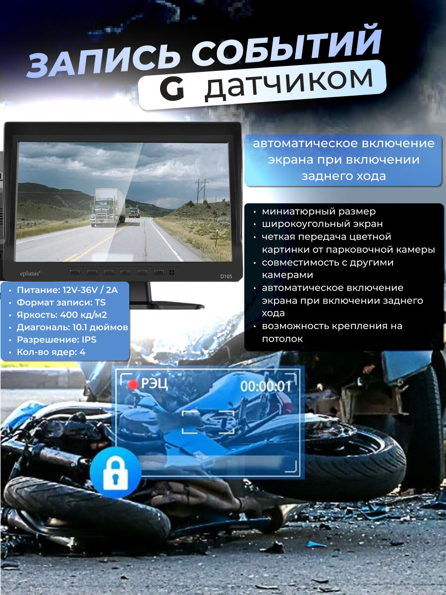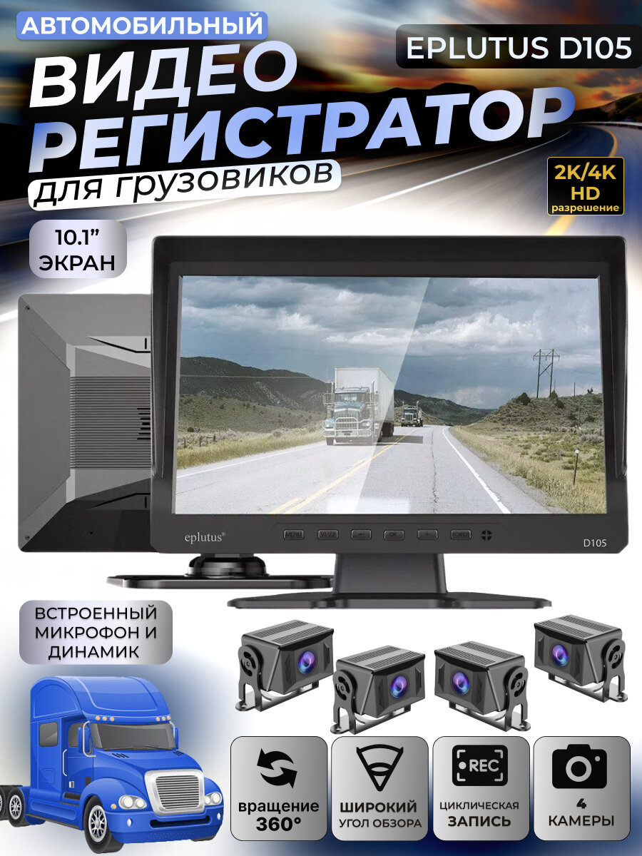 Видеорегистратор Eplutus D105 для грузовиков с 4 камерами информация: