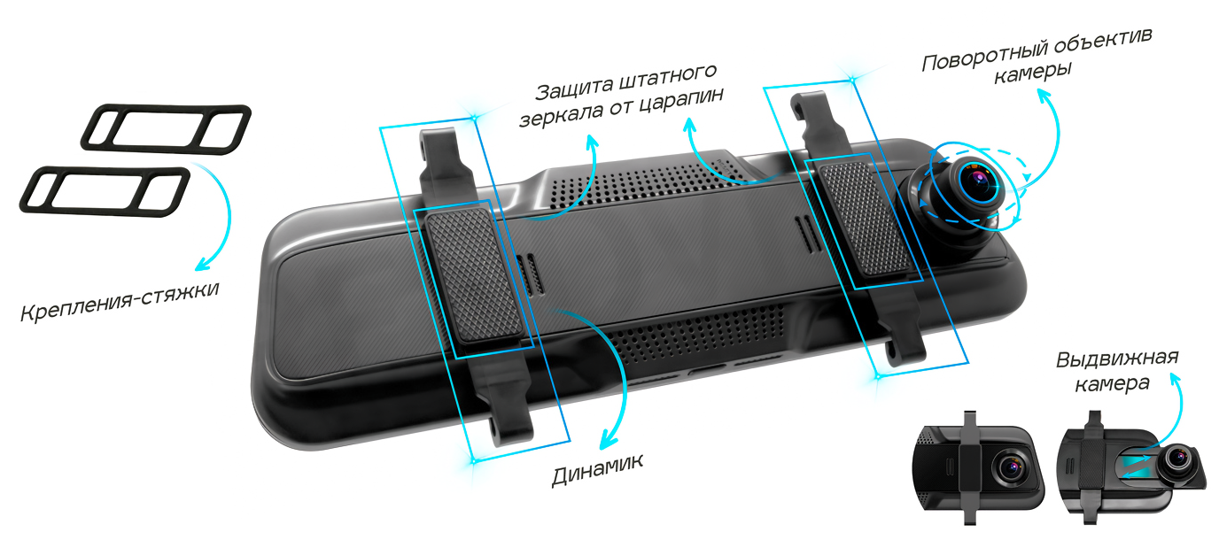 | Дополнительная информация | Комплектация: 1. Зеркало заднего вида со встроенным 10"дюймовым сенсорным дисплеем. 2. Салонная камера + камера заднего вида с кабелем 6 метров. 3. Крепеж. 4. Зарядное устройство от прикуривателя. |