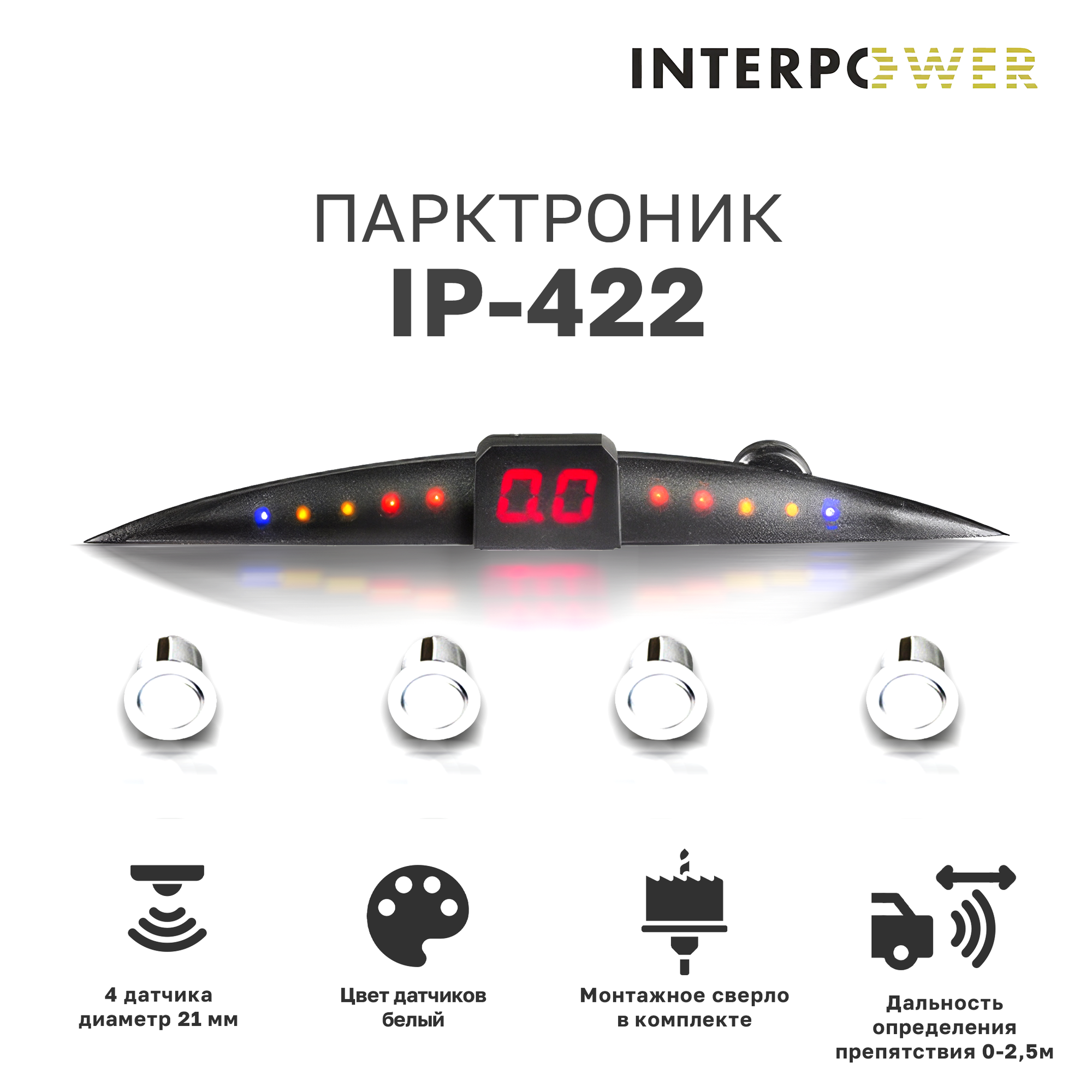 Парктроник Interpower IP-422, 4 датчика - 21 мм (белый) информация: