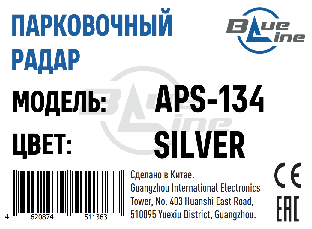 Парковочный радар Blue Line APS-134 с 4мя серебряными датчиками информация: